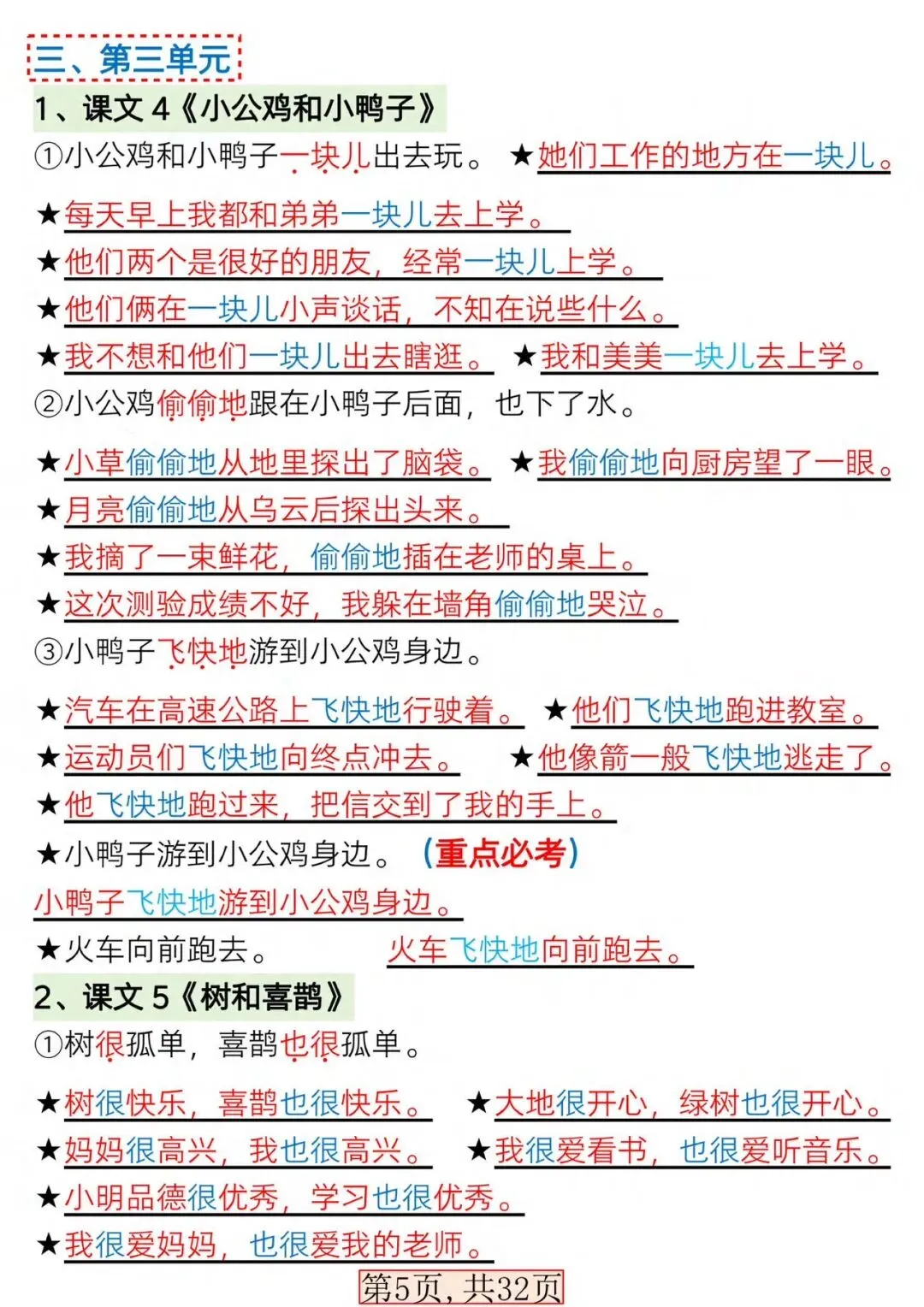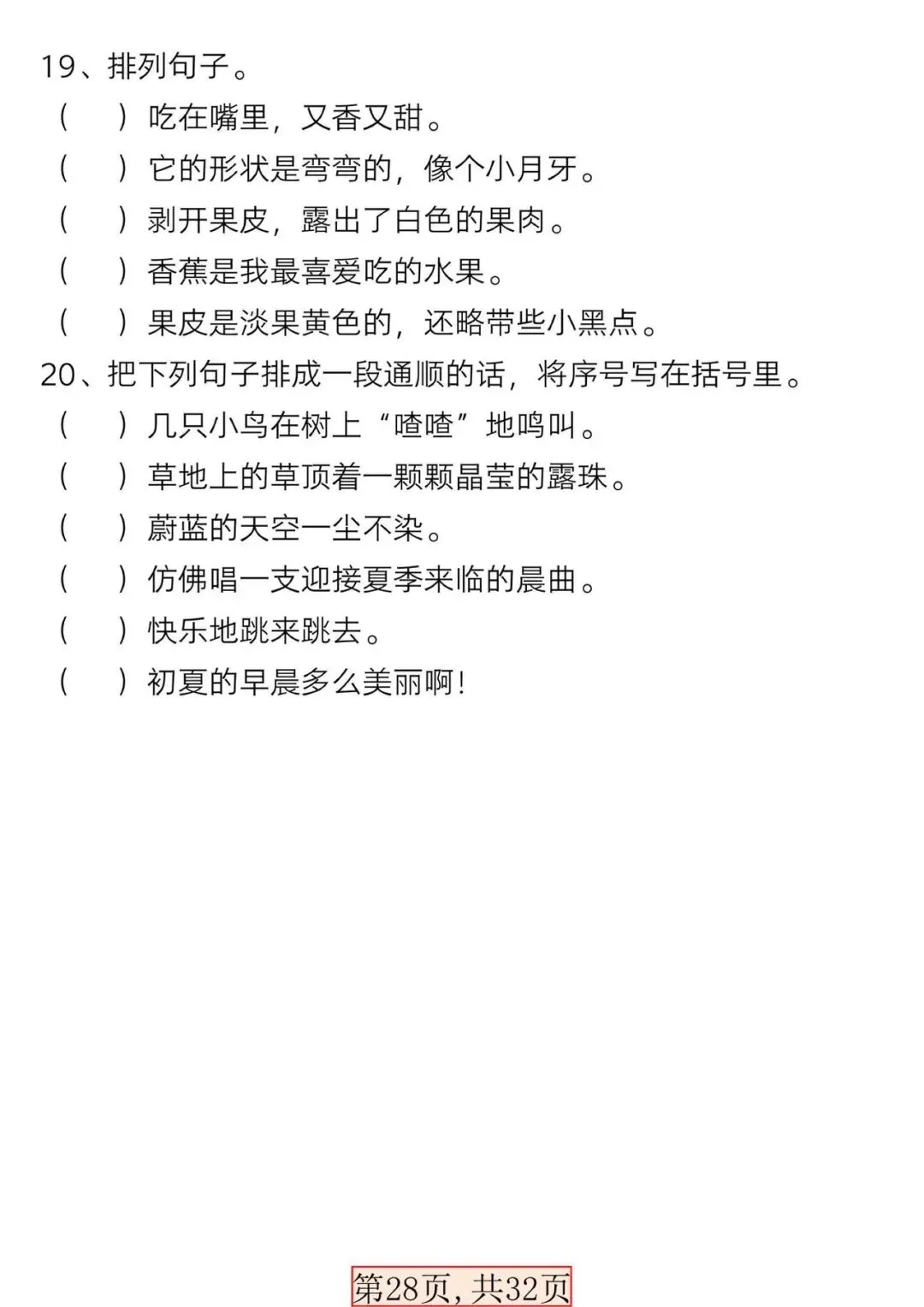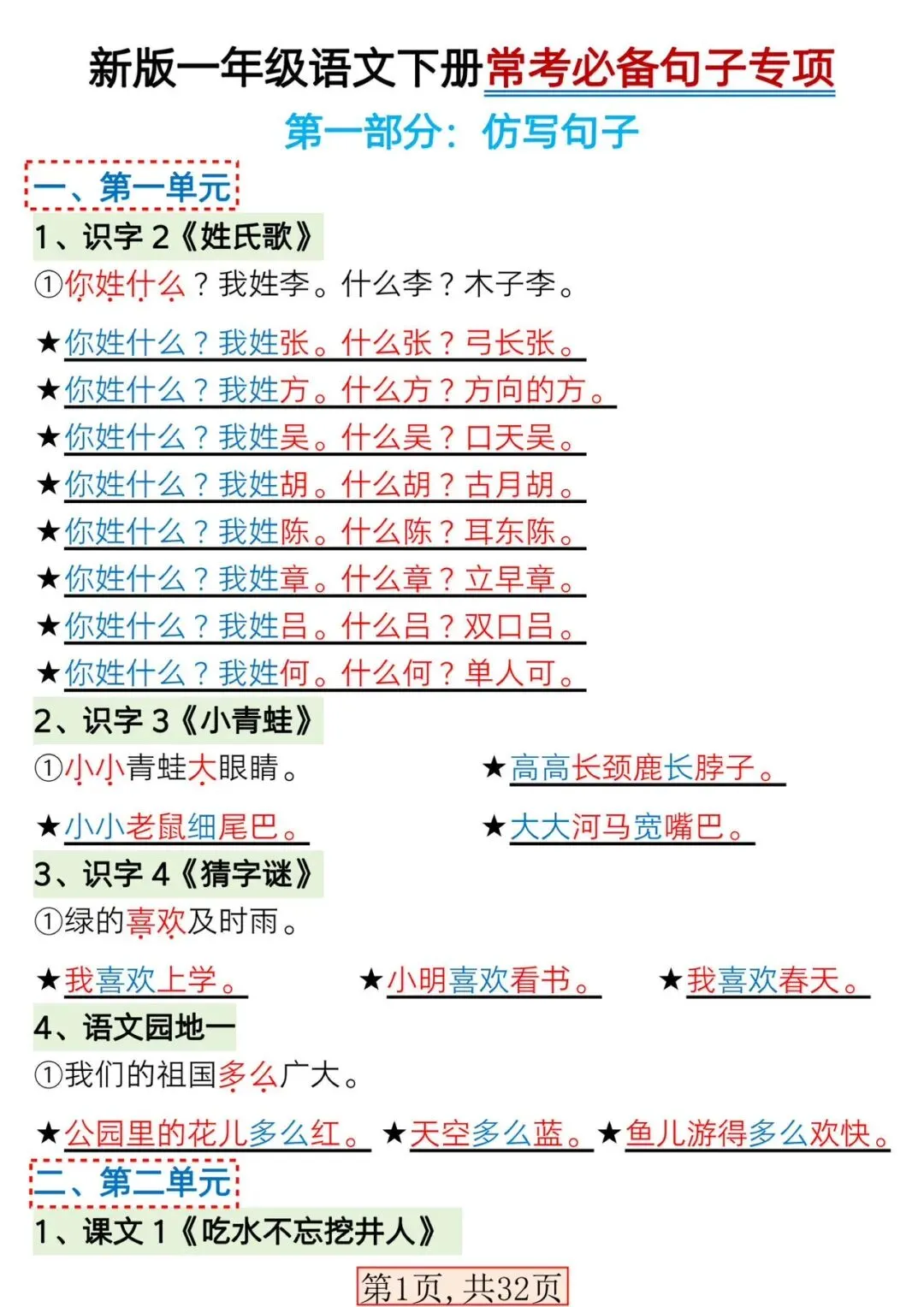 新版一年级语文下册常考必备句子专项【可打印】
