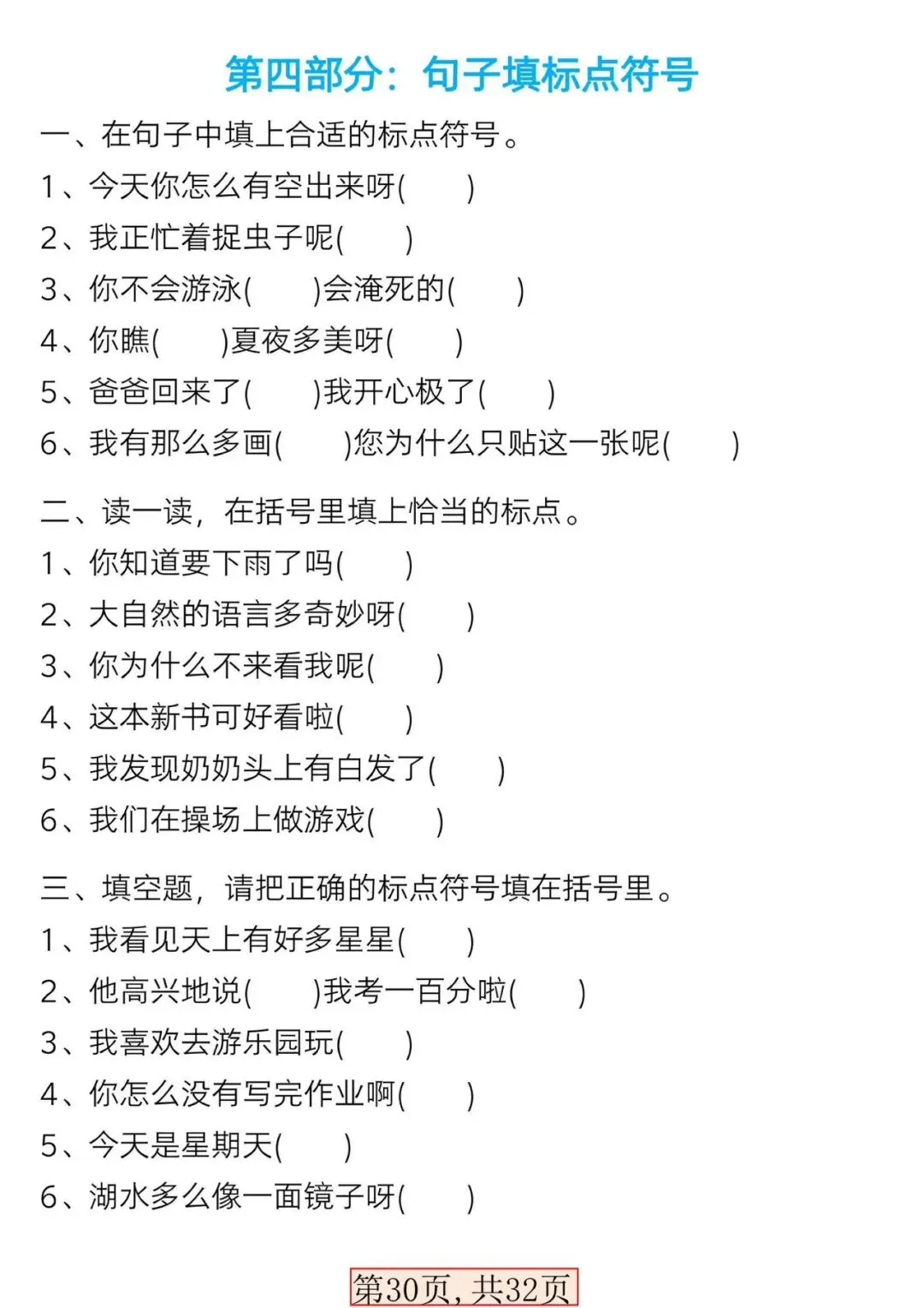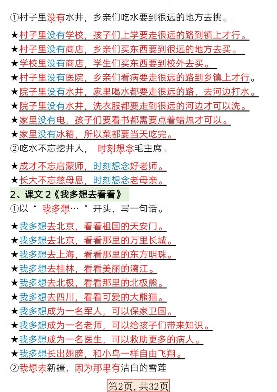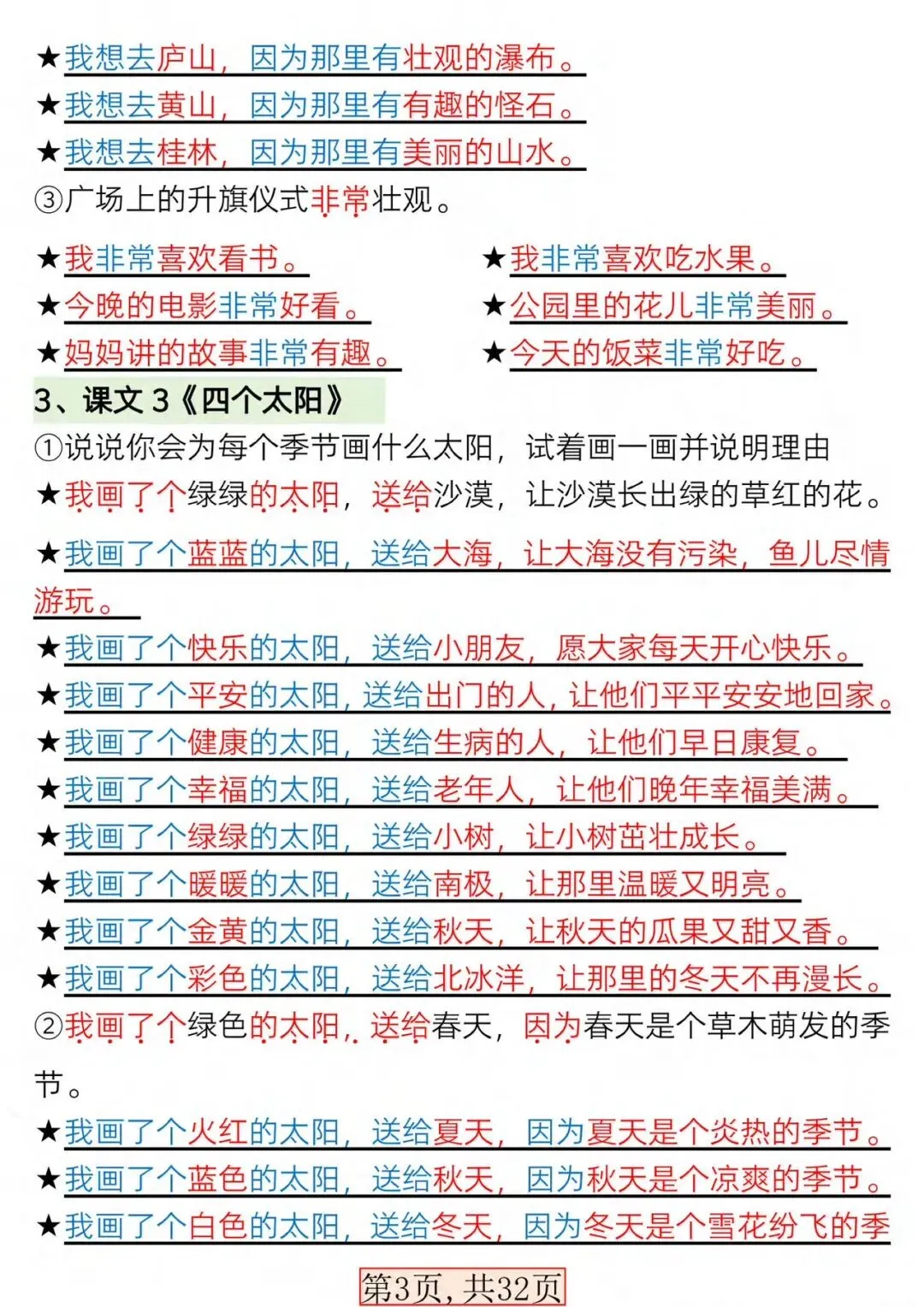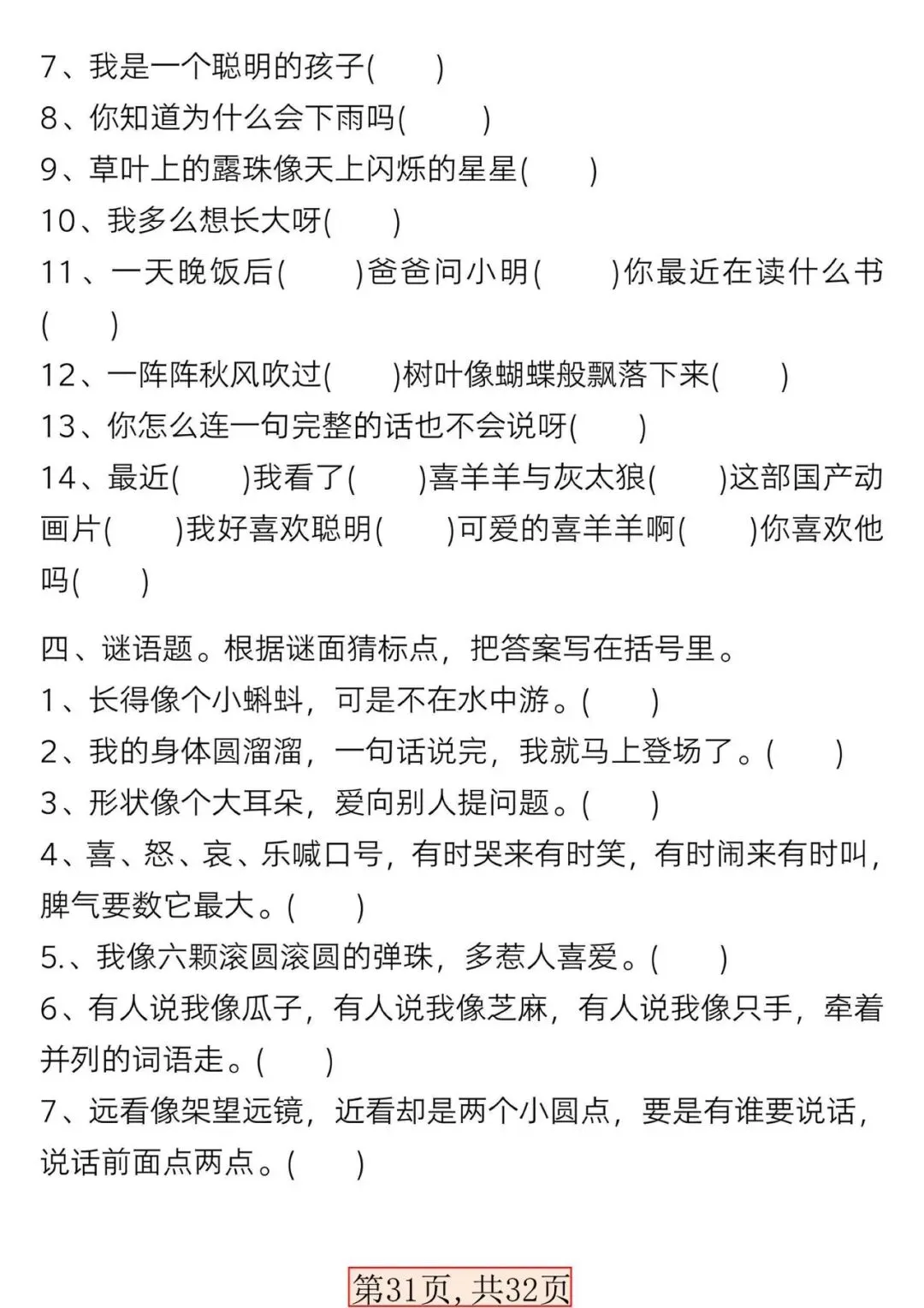 新版一年级语文下册常考必备句子专项【可打印】