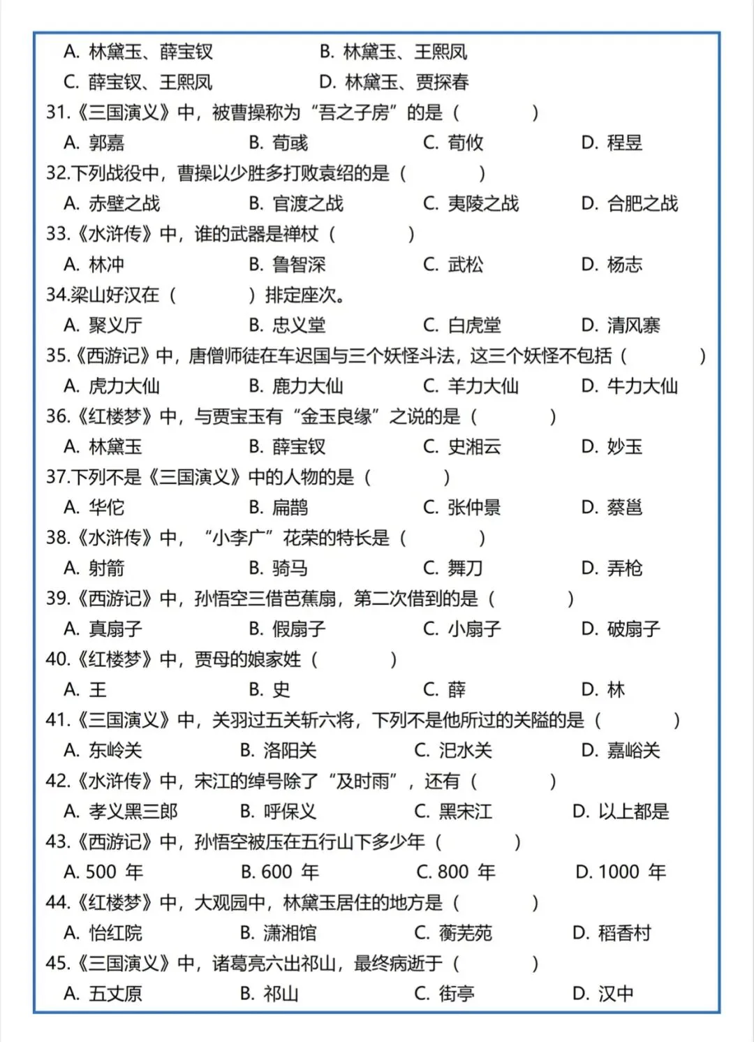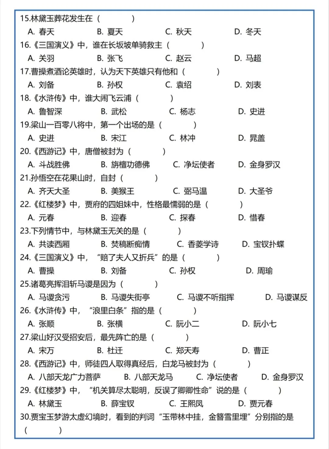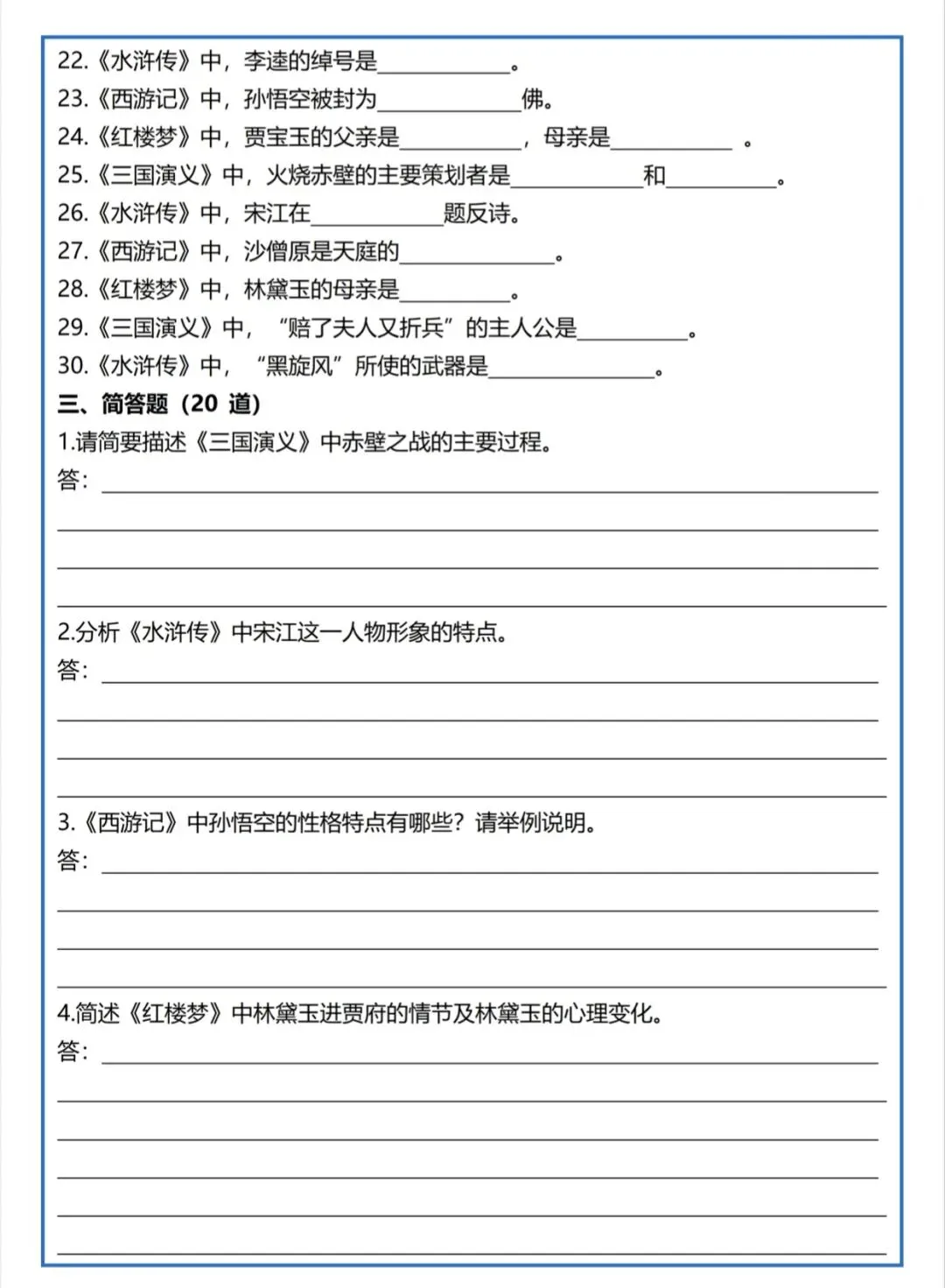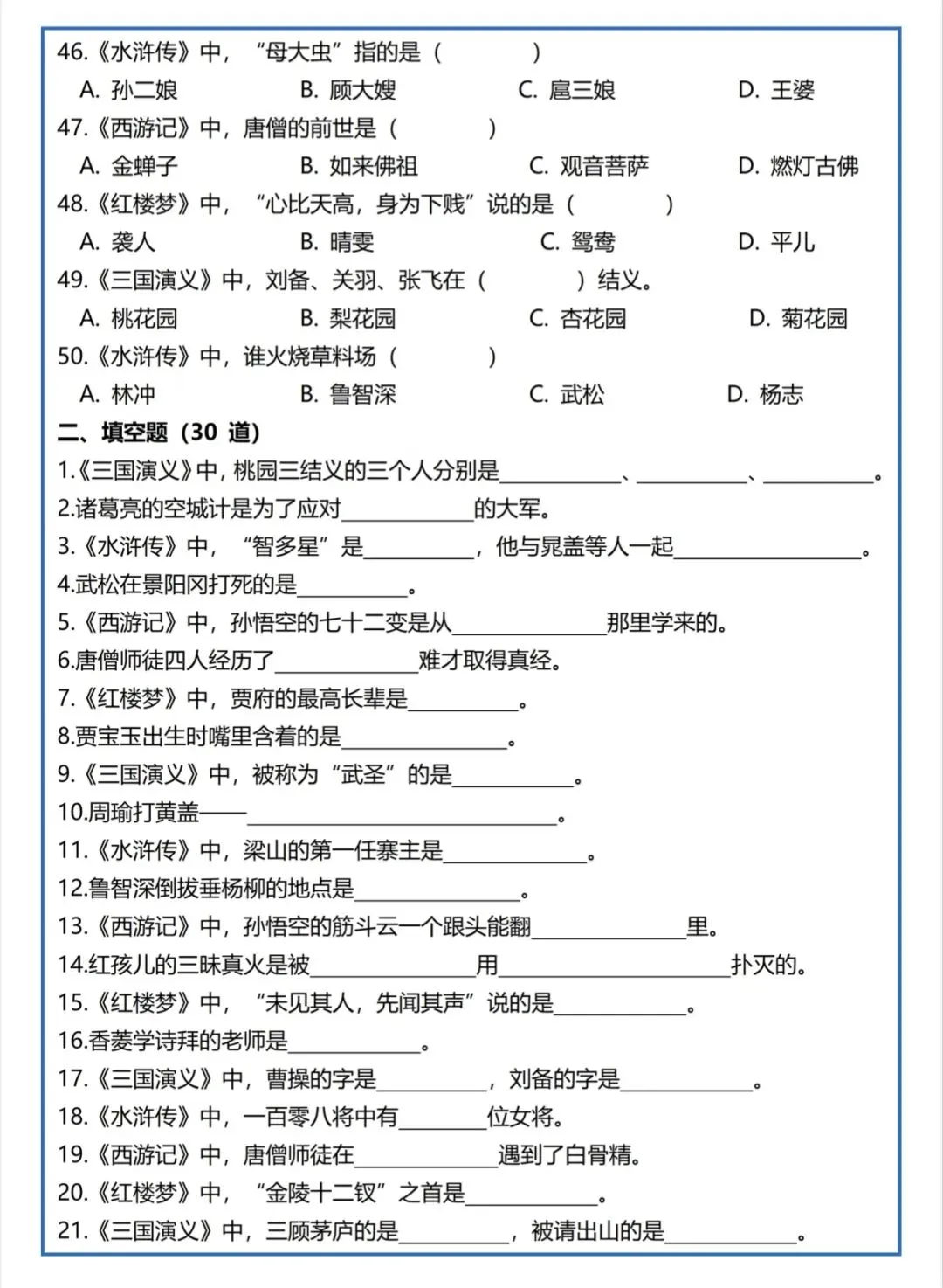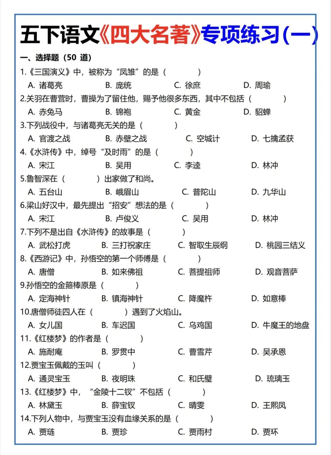 本站文章均为手工撰写未经允许谢绝转载:夜雨聆风 » 《四大名著》专项练习五年级下语文|可打印