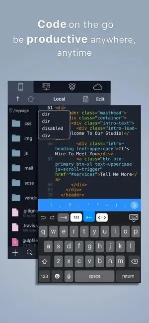 短评: 这是一款轻量级的代码编辑器应用,支持多种不同的编程语言,可以让你在 iOS 系统中通过 SSH 连接到终端,并且通过 SFTP、FTP、WebDev、Dropbox 等来进行读取存储。