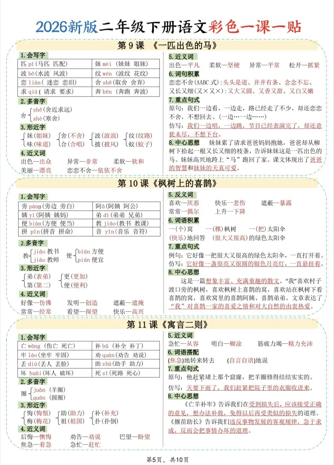 本站文章均为手工撰写未经允许谢绝转载:夜雨聆风 » 26新二年级下语文彩色一课一贴课课贴|可打印