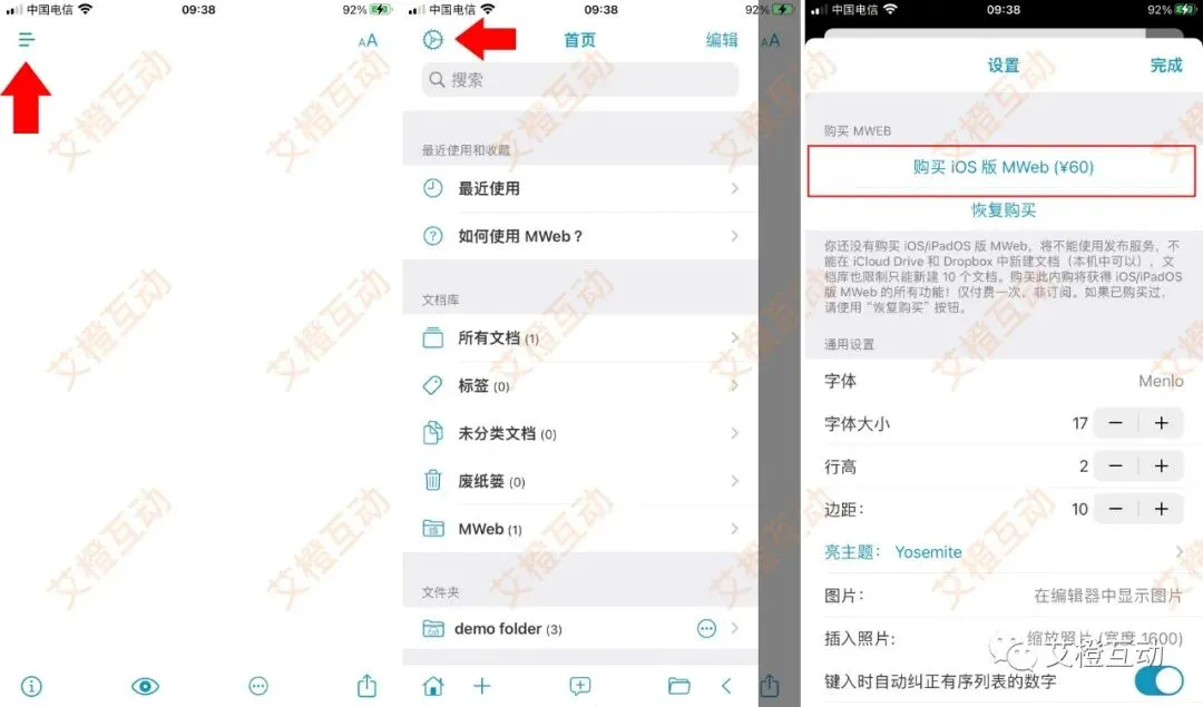 设置界面,点击购买 iOS 版 MWeb,如下图右所示。