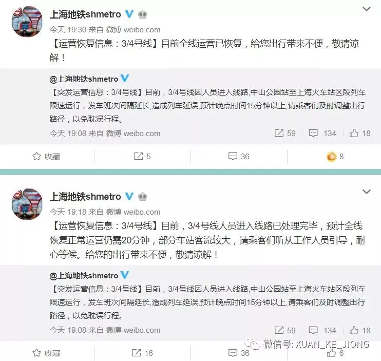 上海地铁官方微博发布情况说明
