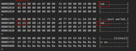 这个 ID 相当于魔数,在 swp 文件中很容易识别出来,比如在下面的文件中第一个 4k 存储的是 block0,第二个 4k 存储的是 pointer 类型的 block。
