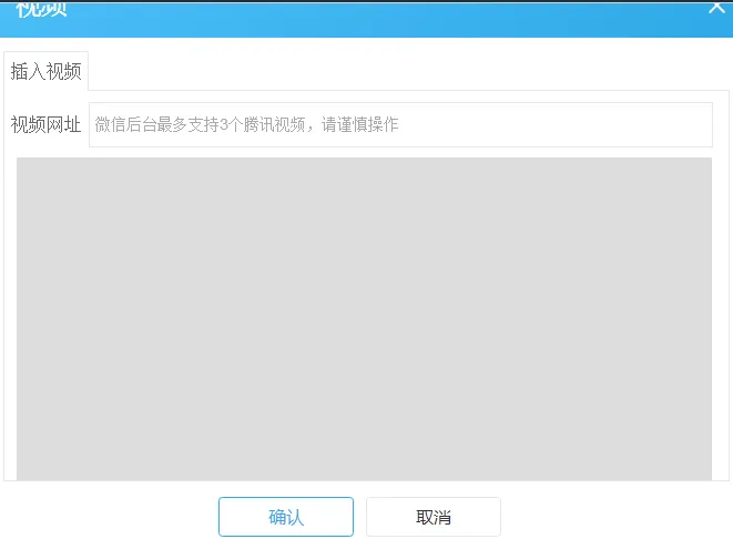 插入视频:将视频上传到腾讯视频后,点击右键,复制视频地址,点击此处插入视频,将视频地址复制到对话框中,点击确认后,即可在文章中插入视频。