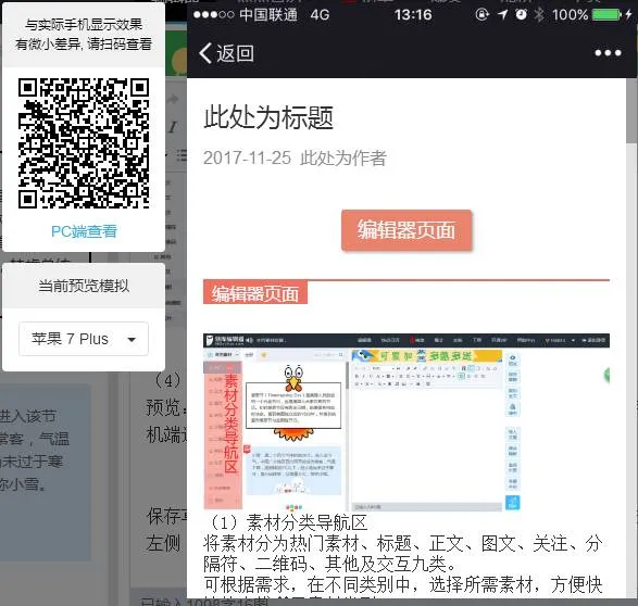 预览:点击预览,生成手机端格式浏览界面,可扫描二维码,在手机端进行查看。