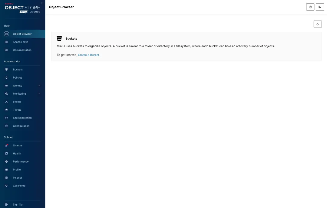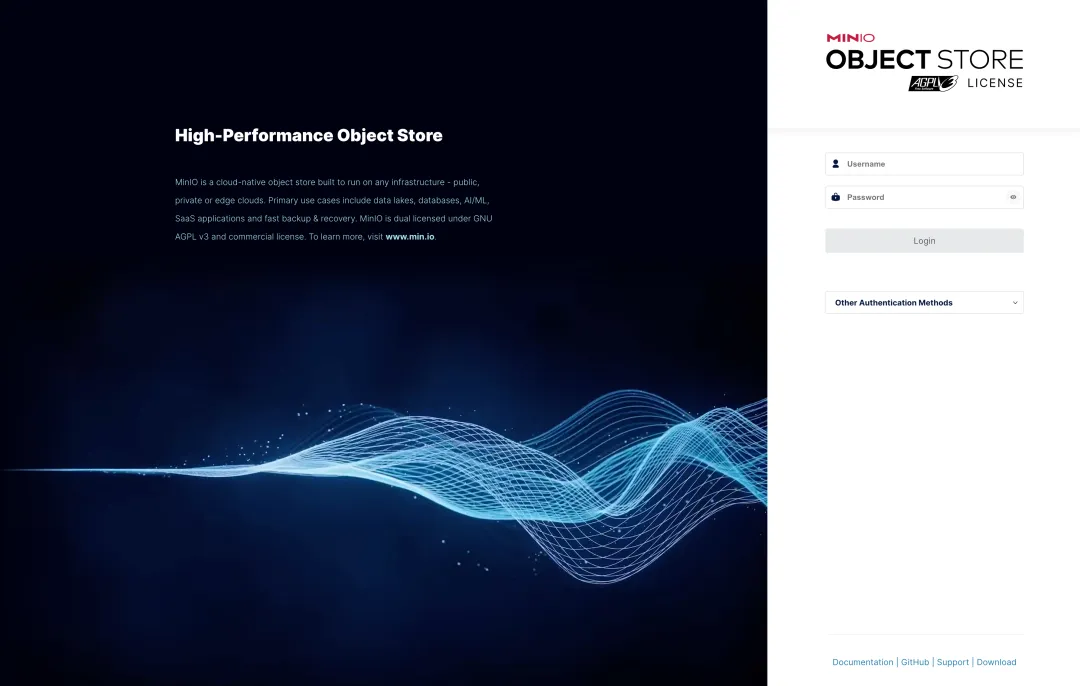输入 MINIO_ACCESS_KEY 和 MINIO_SECRET_KEY(即账号密码)登录