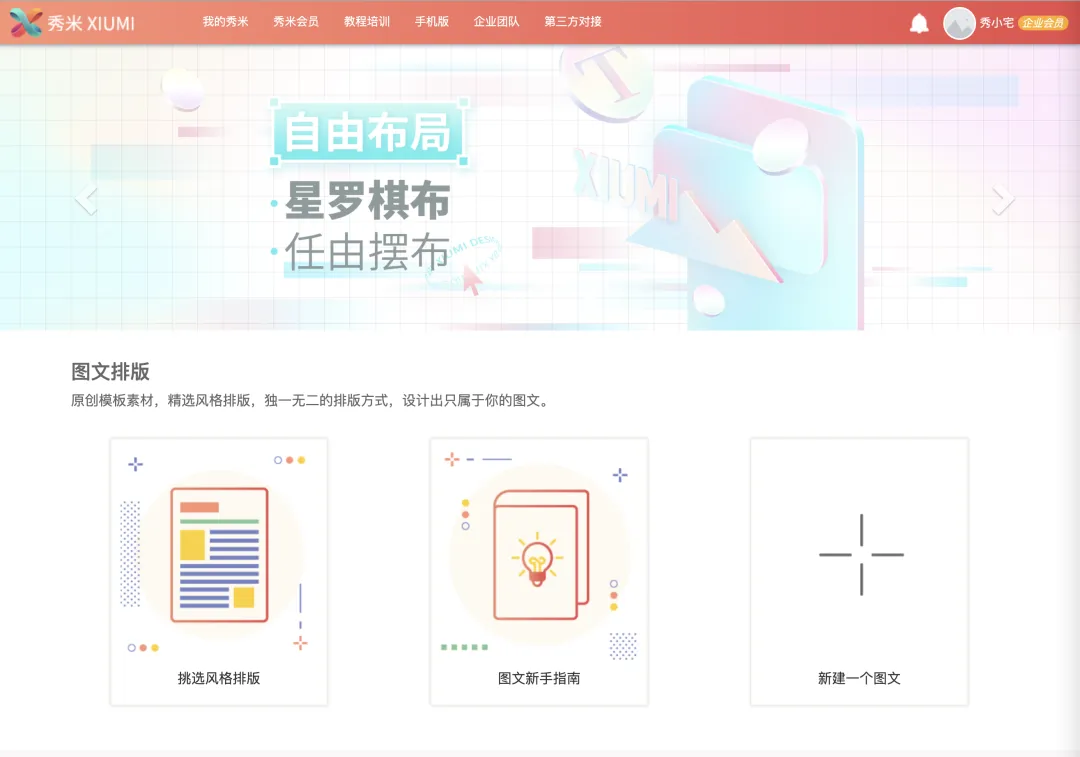 秀米发展已有8年,制作秀米图文,可以用作公众号排版发布,也可以直接以秀米永久链接或二维码的形式直接发布;可以用秀米H5,制作邀请函、宣传海报等;可以借助生成长图、贴纸图文、图片设计等功能,发布到更多平台;甚至可以与第三方对接,方便稳定地在自己平台使用秀米排版内容等等。