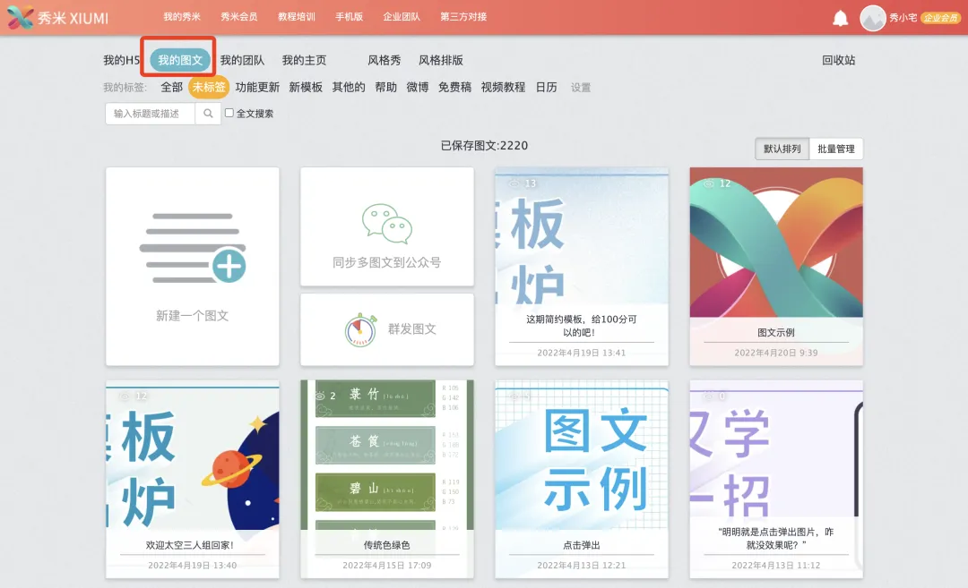 秀米图文,主要针对于没有微信公众号的用户,用于发布排版内容;当然,无论你准备的是公众号排版,还是需要发布到其他平台的图文,都会放在我的图文里。