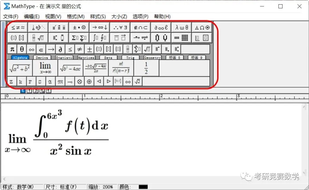 【注1】通过“视图”菜单中的“缩放”选项,或者对应的快捷键(【Ctrl】+数字1,2,4,8),可以更改公式编辑区域的公式显示比例。