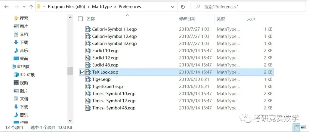 在Mathtype的软件安装文件夹“Preferences”下存放有一些样式模板文件,可以直接在Mathtype中加载设置公式样式,如图11。