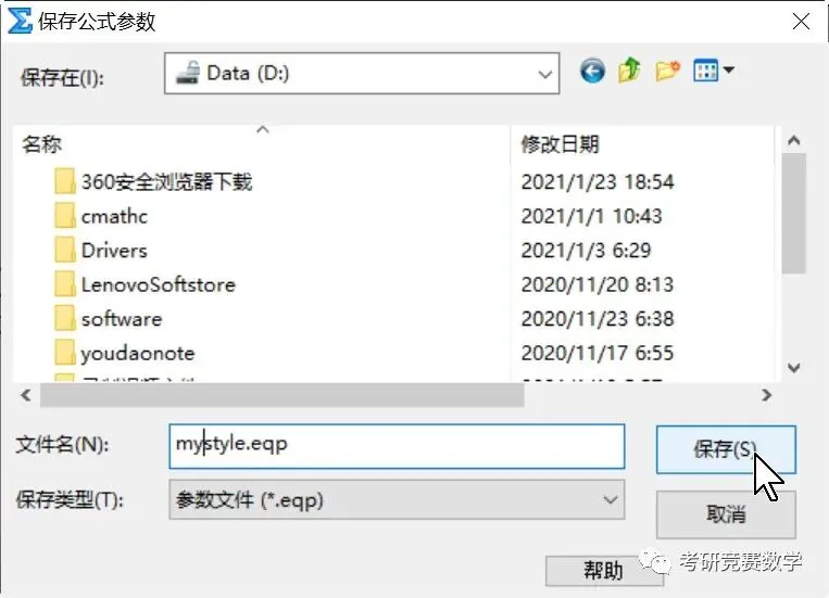 如果修改过公式样式,比如字体大小、间距、字体、粗体、斜体等样式,并且希望在不同电脑中直接调用该参数设置,或者希望别人快速应用该样式编辑公式,则可以将自己的设置保存为样式模板文件,然后按照以上步骤加载即可应用。具体操作步骤为:
