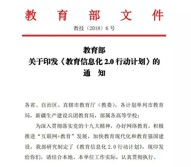 在国家“互联网+”、大数据、新一代人工智能、AR/VR等重大战略引导下, 2018年4月13日,教育部印发《教育信息化2.0行动计划》通知,提出要到2022年基本实现“三全两高一大”的发展目标。国家的大力支持使得我国教育信息化产业得到快速发展。