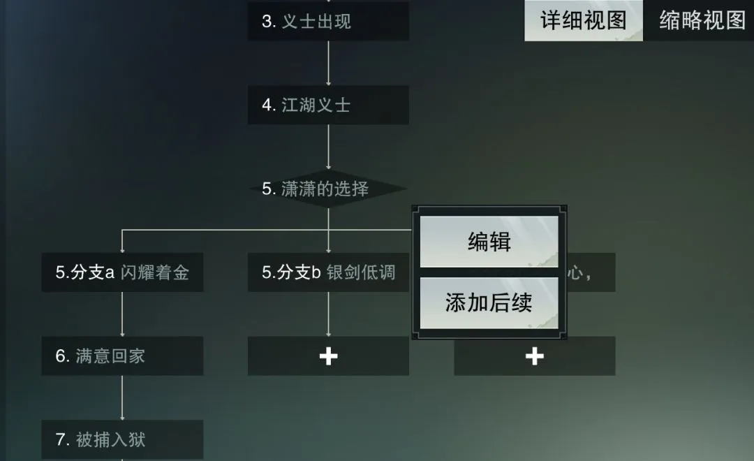 第三步:任务和地图布置完毕后,少侠可以在流程图中检查剧情的发展脉络,还能重新编辑修改或者添加后续!
