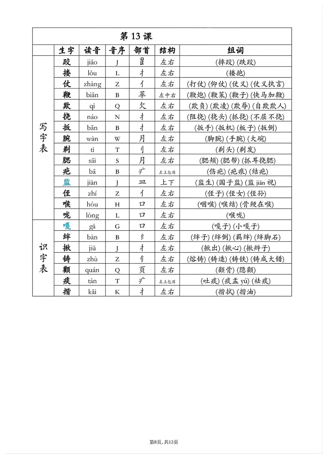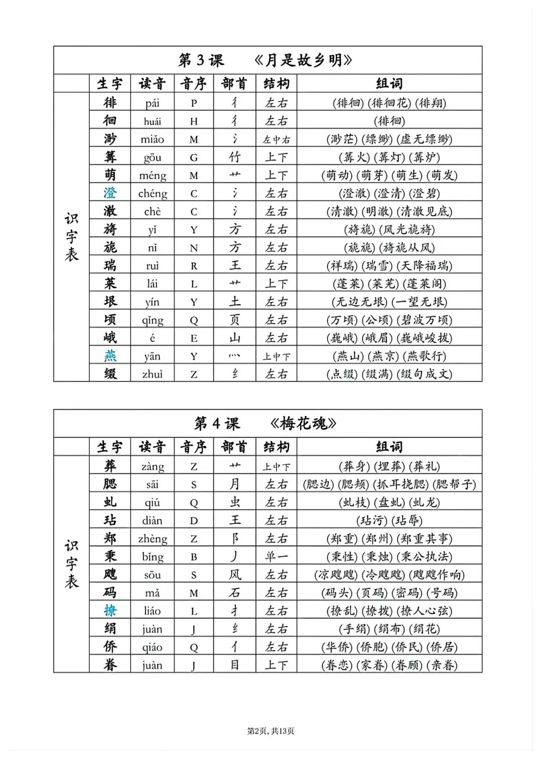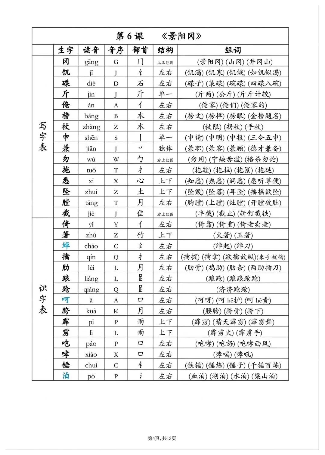 五年级下册语文同步生字组词高清电子版可打印