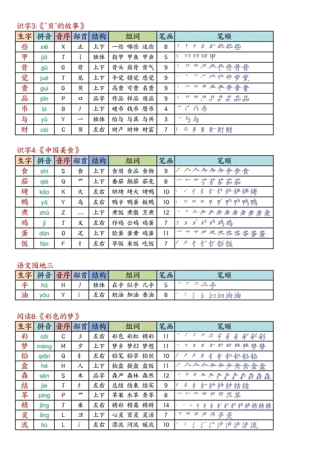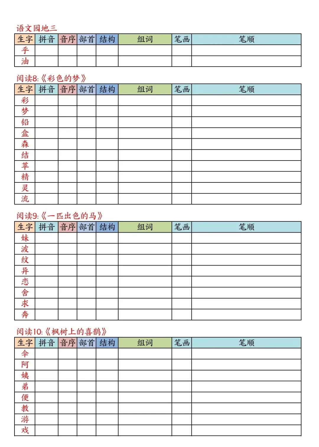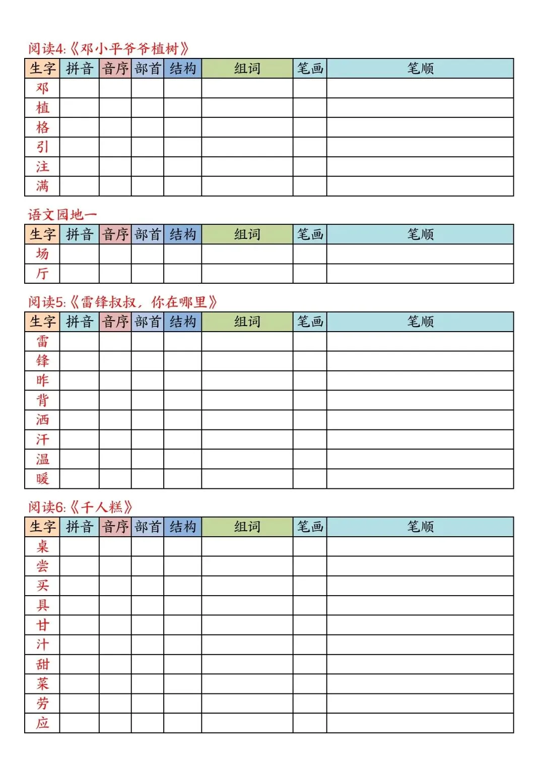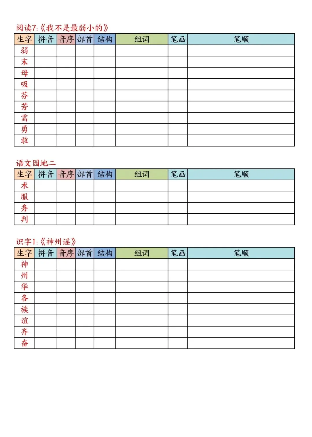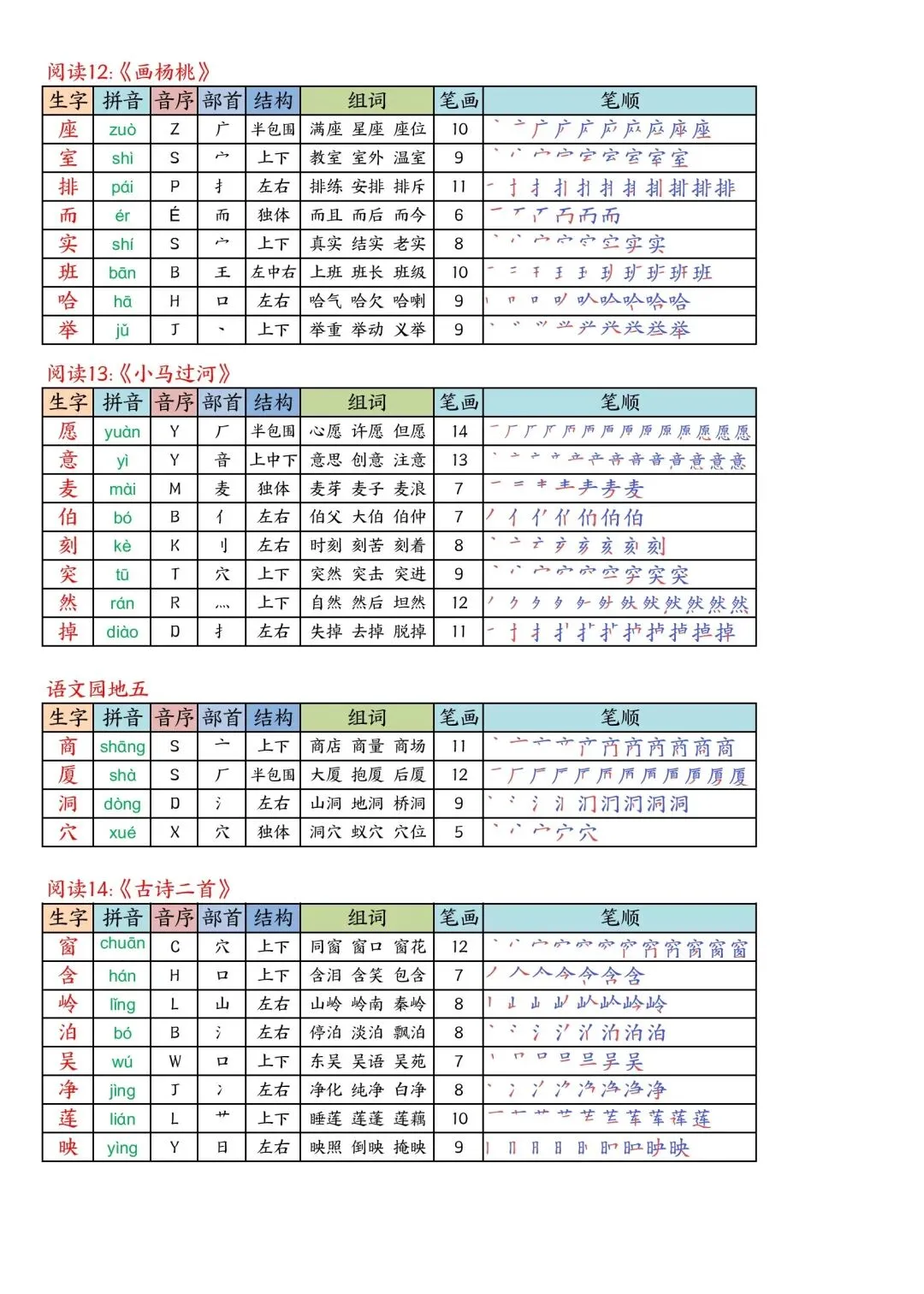 二年级下册语文写字表课课贴高清电子版可打印