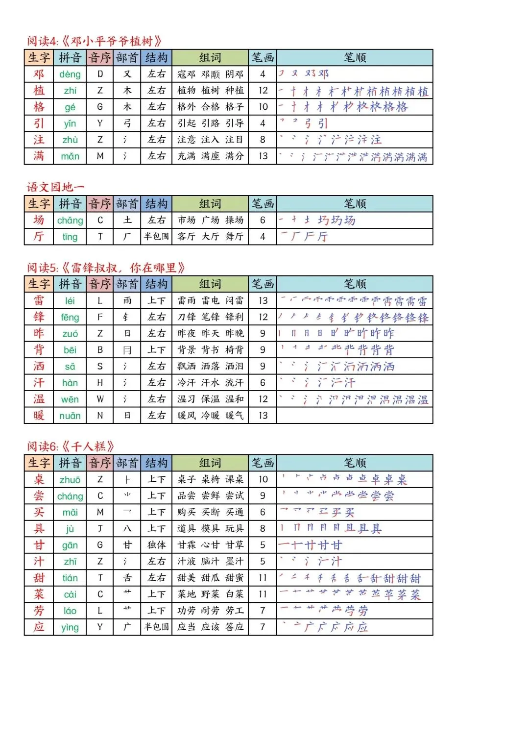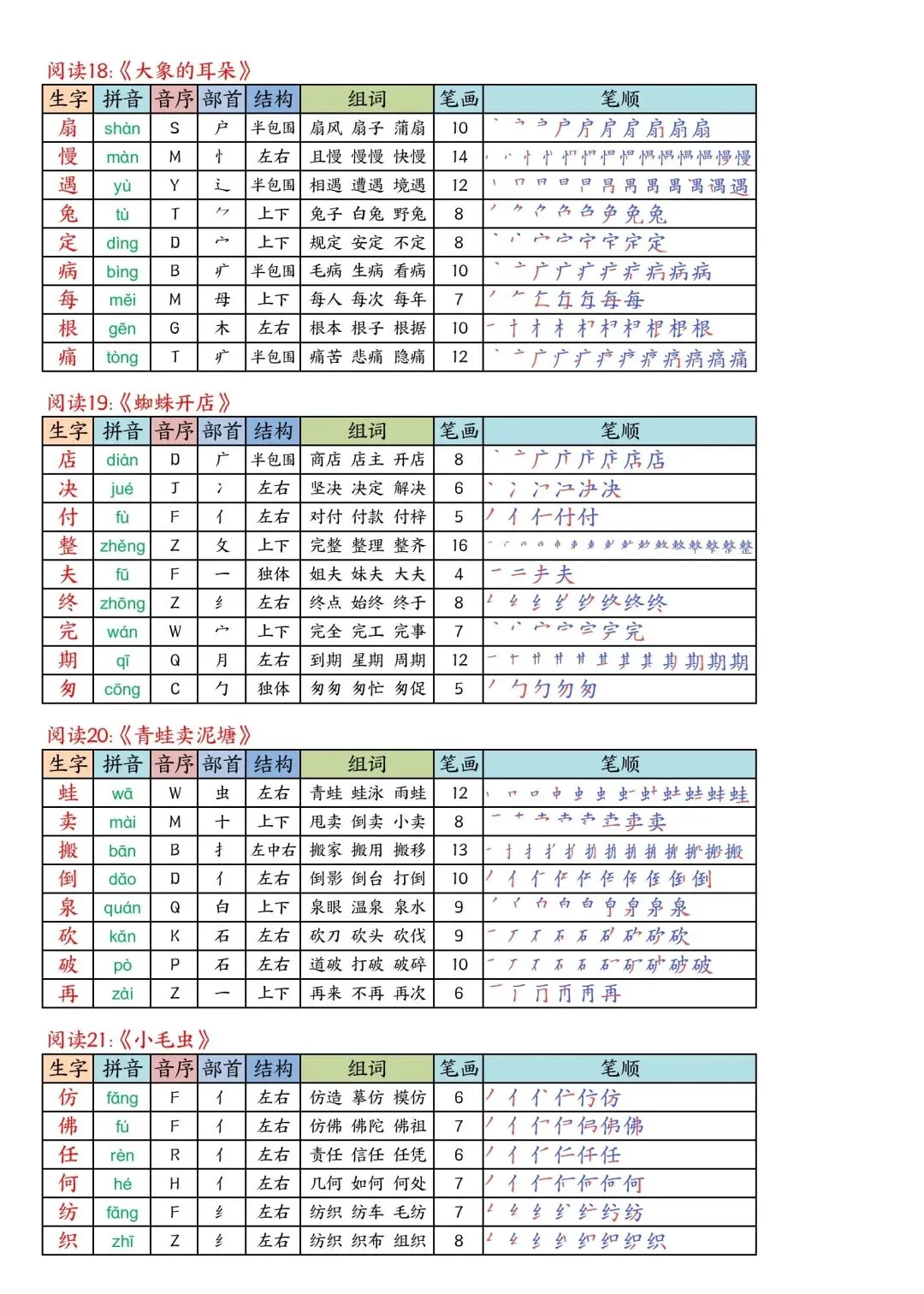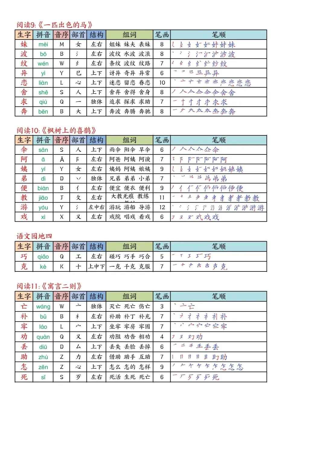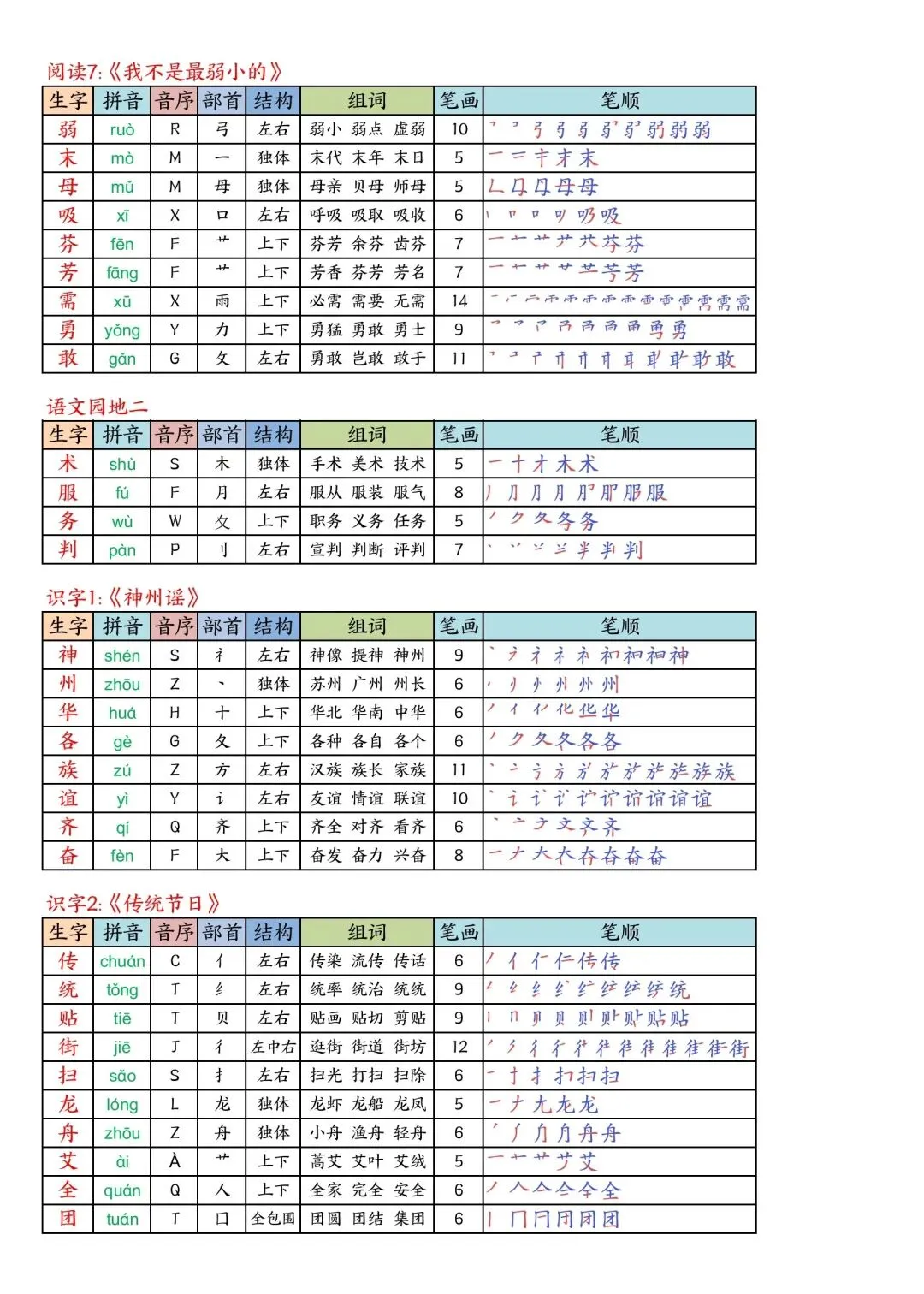 二年级下册语文写字表课课贴高清电子版可打印