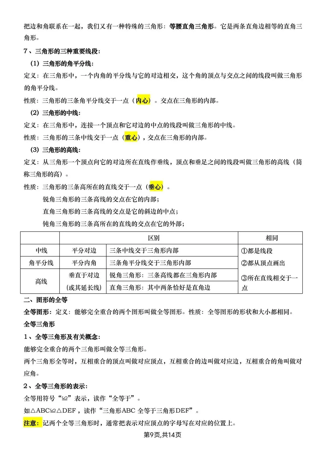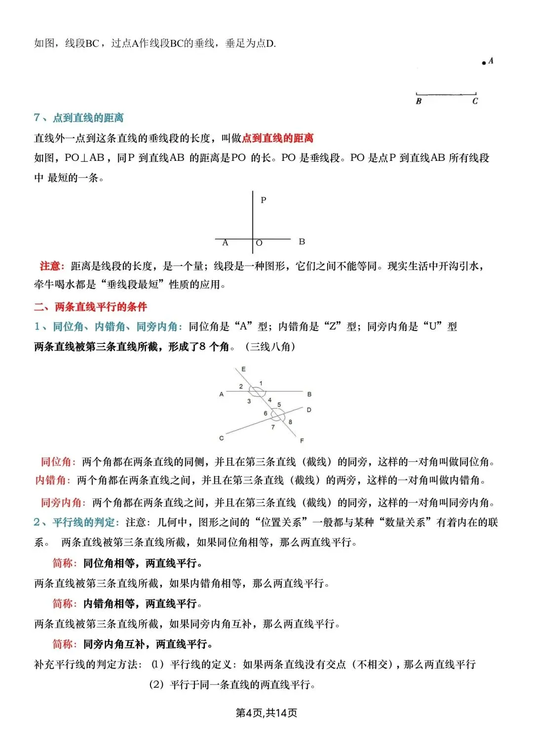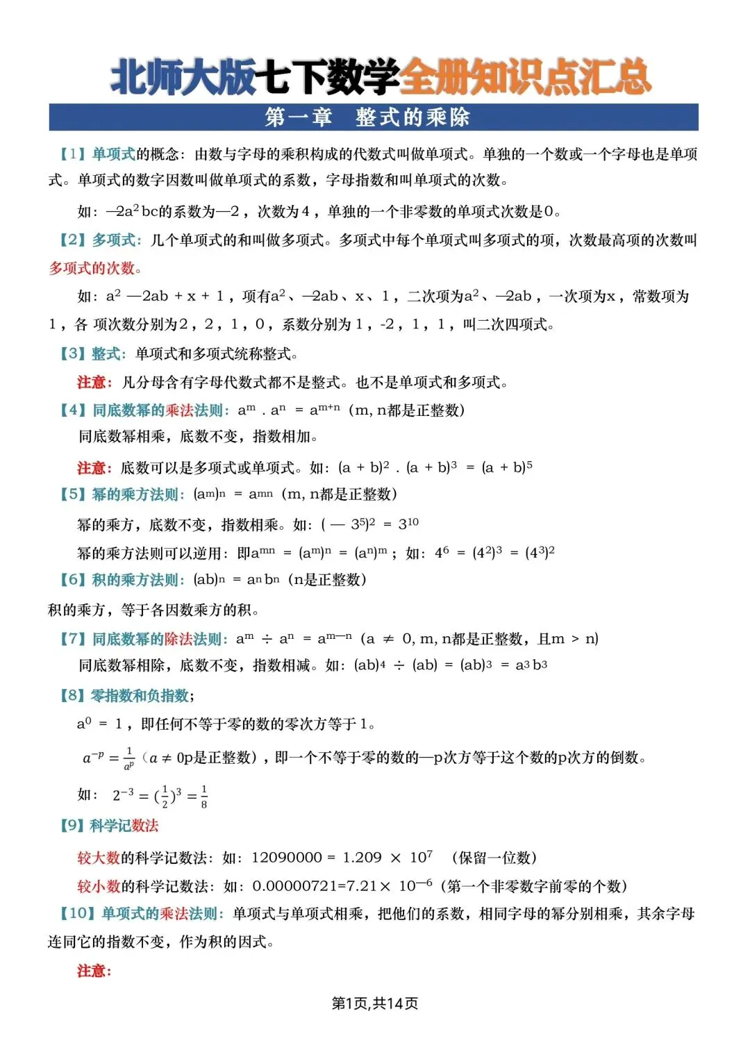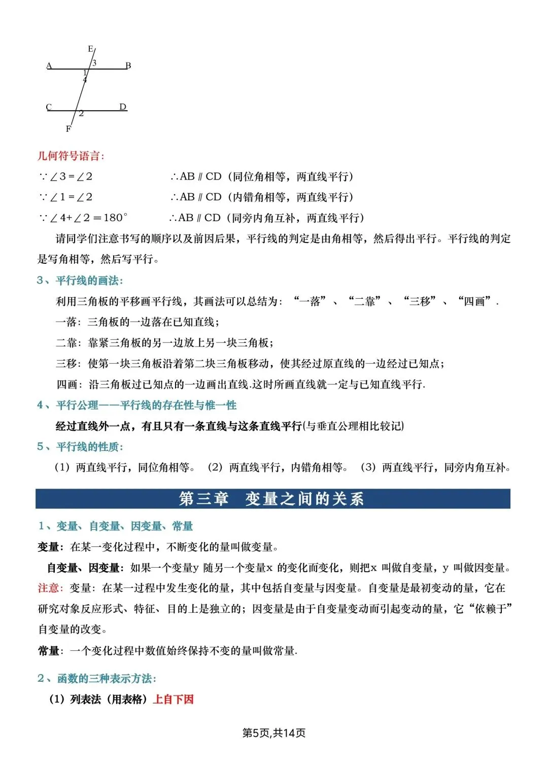 七年级下册数学北师大版全册知识点总结高清电子版可打印