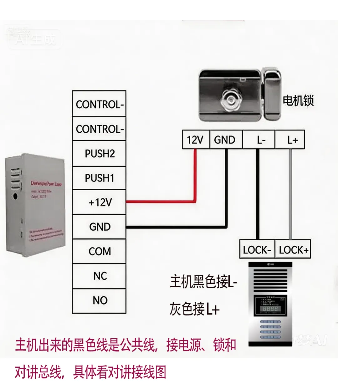 12V G 两芯是电源:一般接12V-16V之间的电源, 如果想省钱,也可以考虑与对讲共用一个电源(有的锁可能会出现干扰对讲的情况,具体不同的锁表现不一样)
