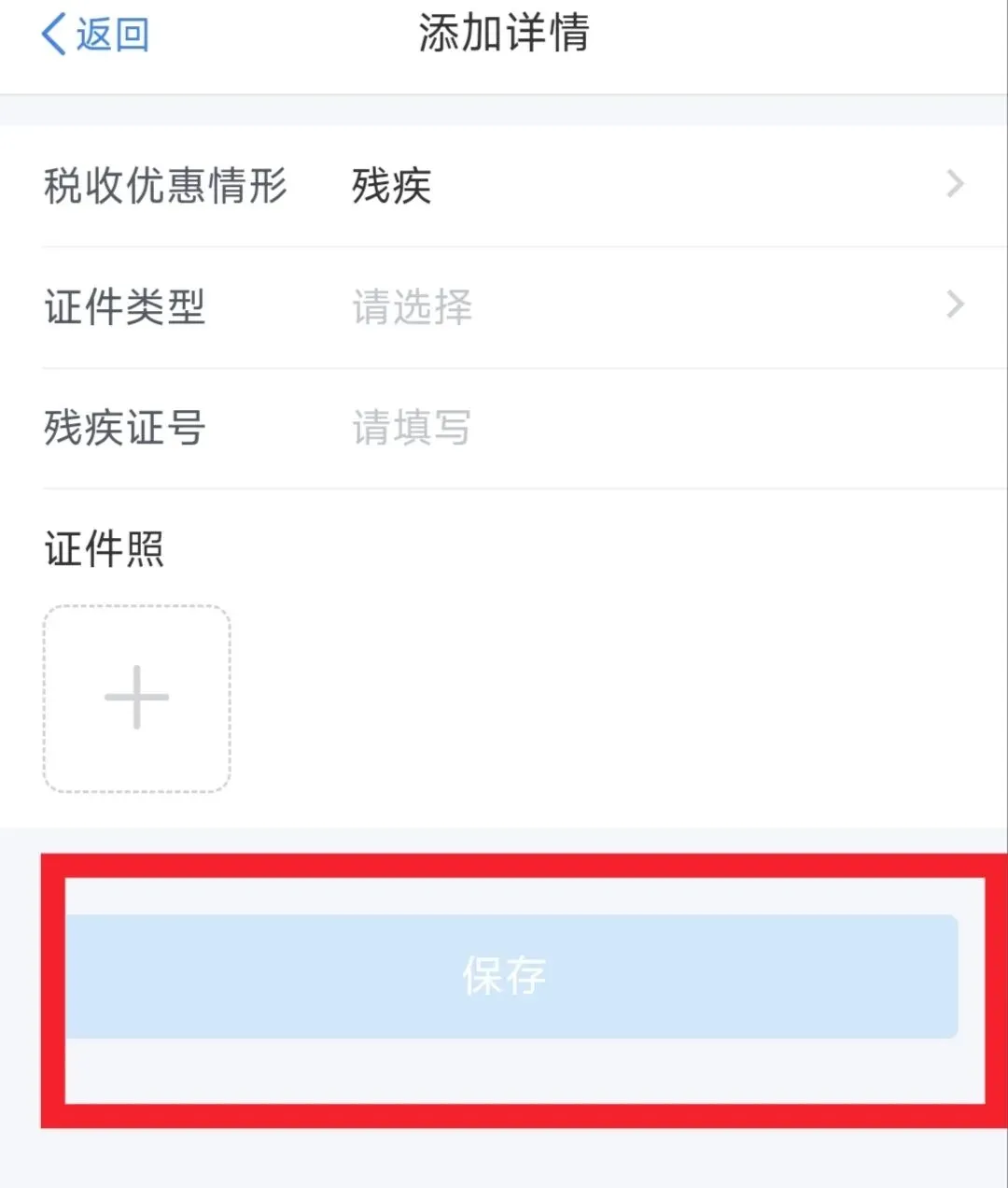 个人所得税APP残疾人减免税备案保姆级流程 个人所得税APP残疾人减免税备案操作流程 ①登陆个人所得税APP ②点击个人信息 ③点击可享税收优惠 ④添加 ⑤税收优惠情形选择残疾 ⑥证件类型选择对应的证件 ⑦填写残疾证号、上传残疾证照片 ⑧保存