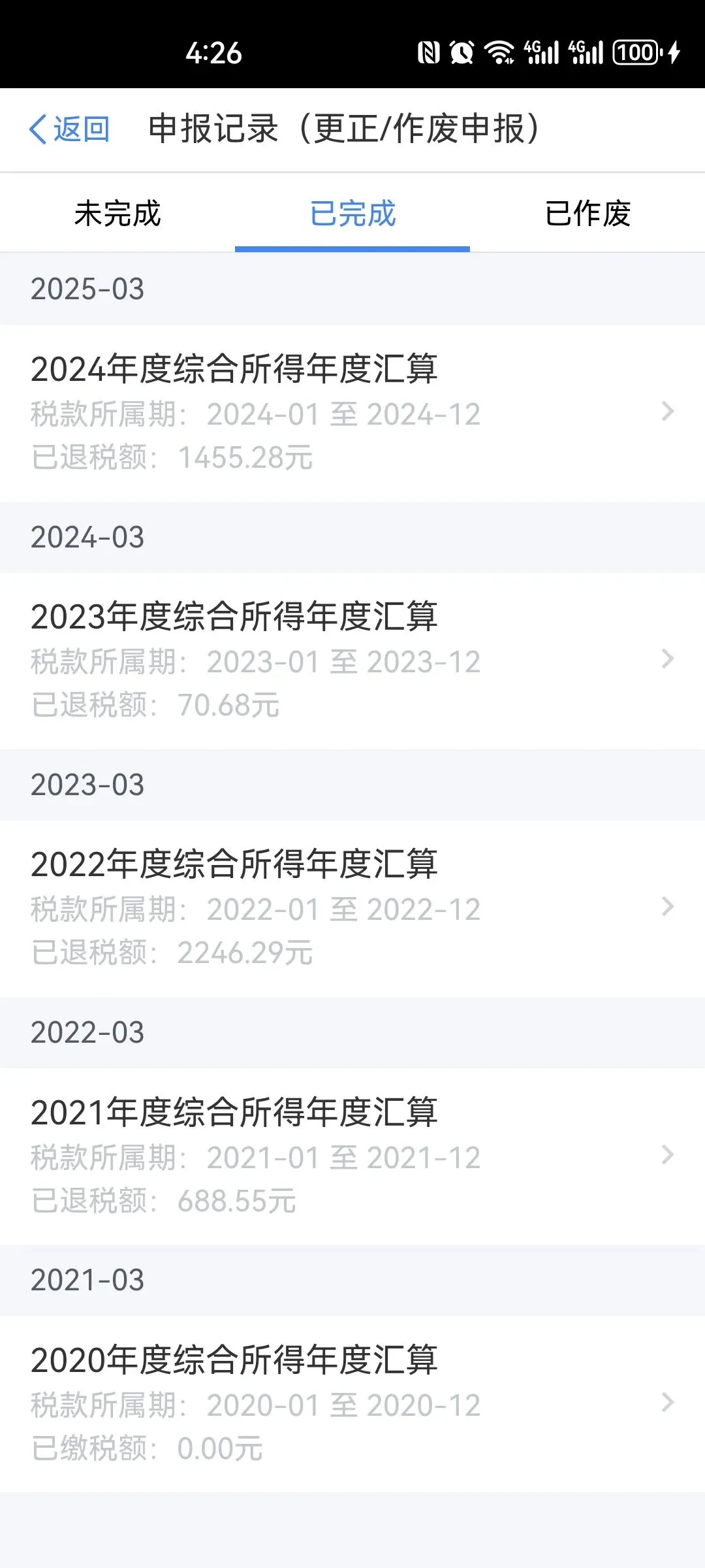 随便选择一年的,点击进入,然后点“已完成”那里,就能看到: