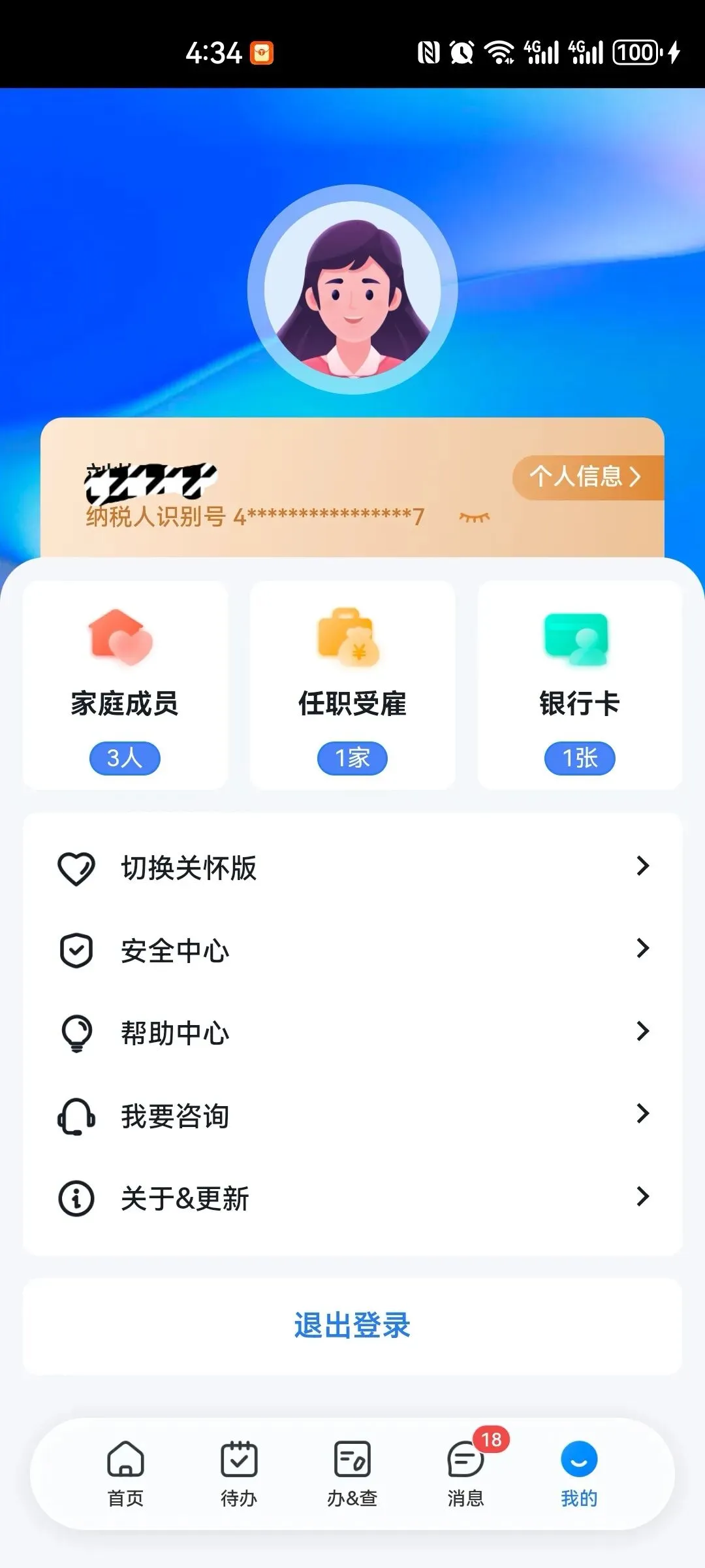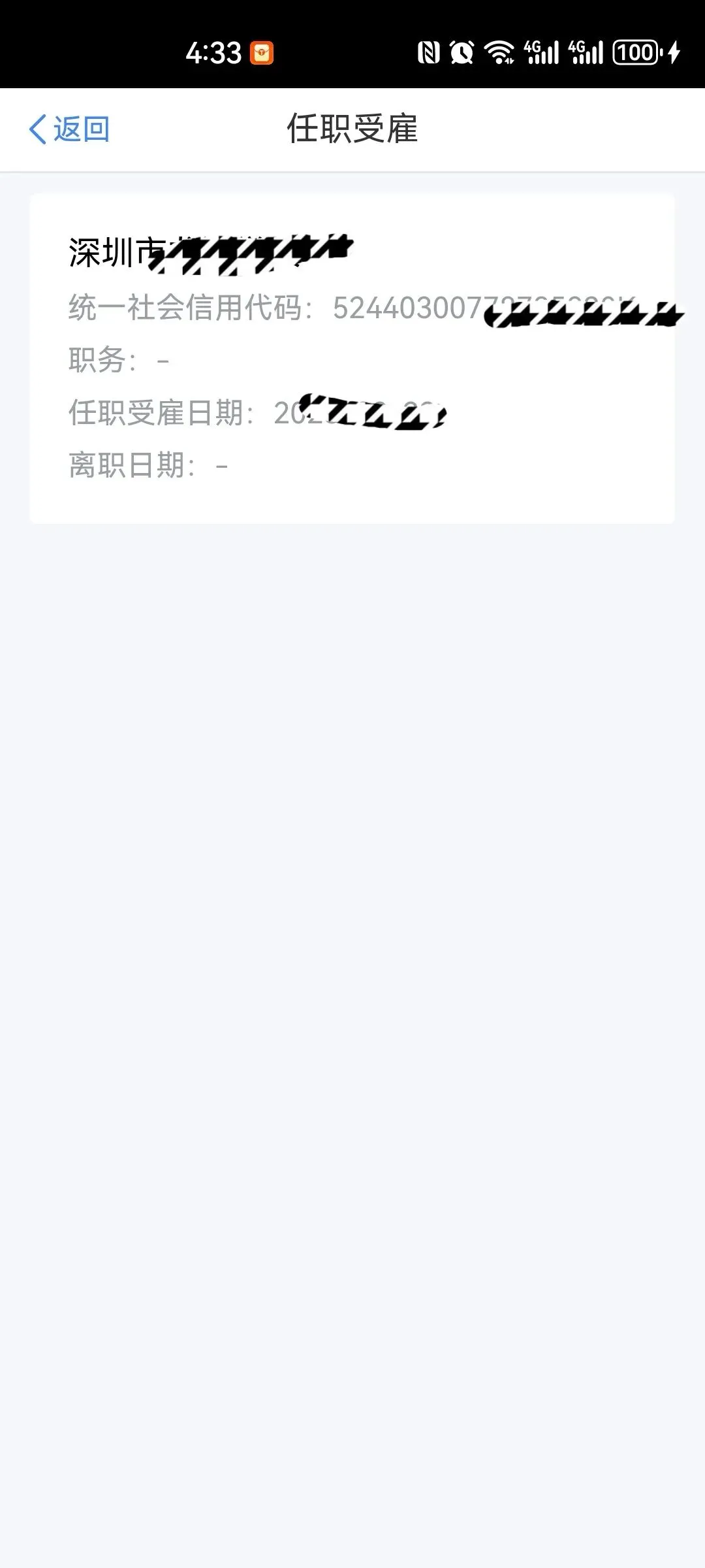 其次还可以直接查询自己单位的社会信用代码:点击主页的”我的”然后再点击”任职受雇”就会出现单位信息。