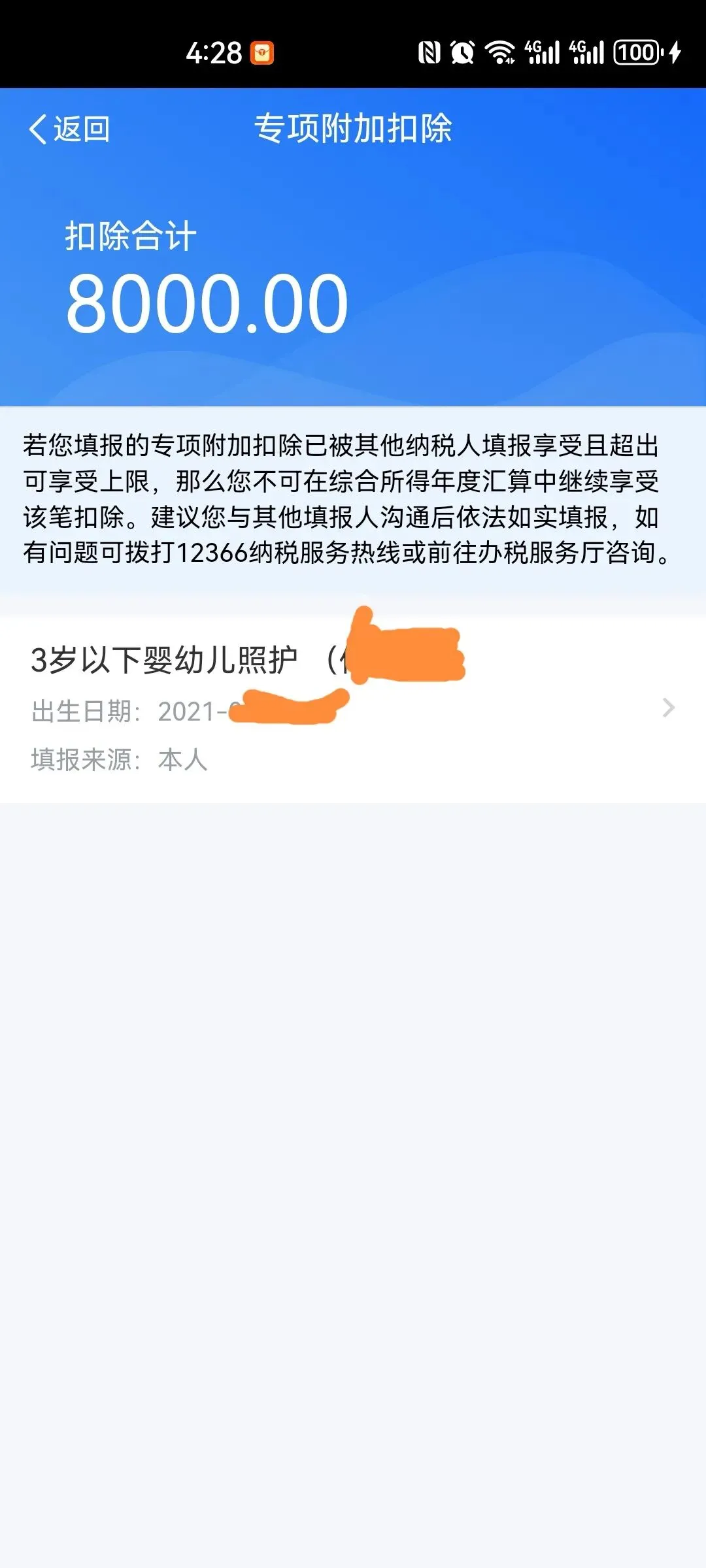 还有租房啊,或者赡养老人等等,政策在界面就有,像我这里,关于孩子的,填好,也是减免了八千(我和老公一人50%)