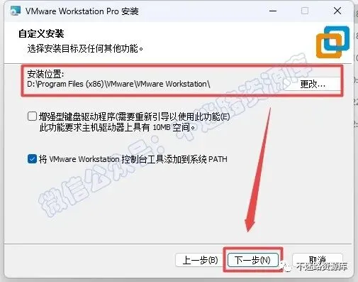 5.选择软件安装路径,建议和教程中的保持一致,本例安装到D盘(将路径地址中的首字符C改为D表示安装到D盘,安装路径不要出现中文),点击“下一步”