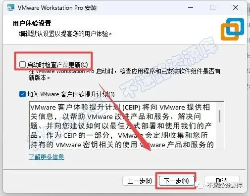 6.取消勾选“启动时检查产品更新”,点击“下一步”