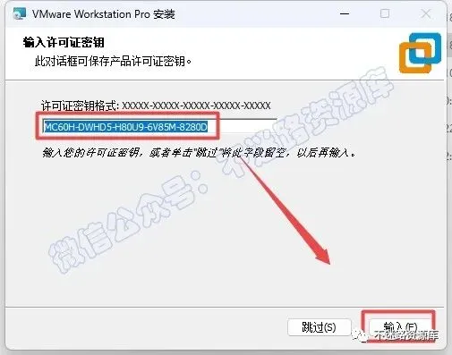 11.输入一组许可证密钥:MC60H-DWHD5-H80U9-6V85M-8280D,点击“输入“