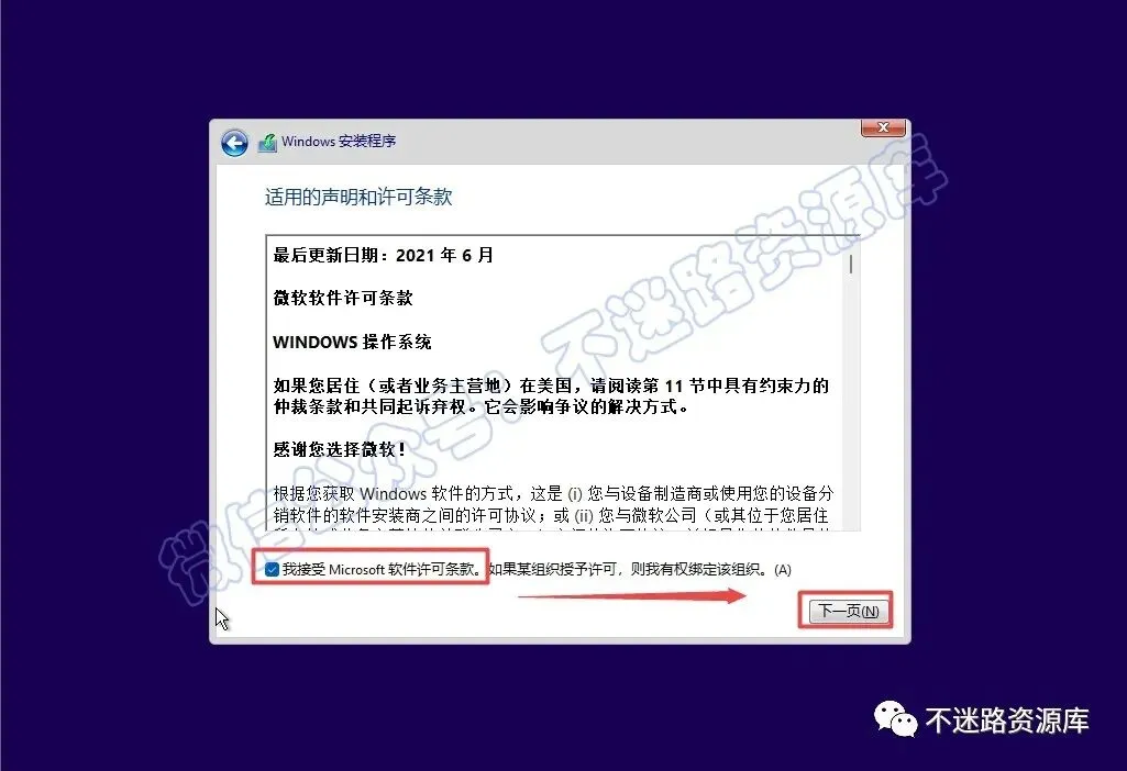 4.点击“我接受…”,点击“下一步”