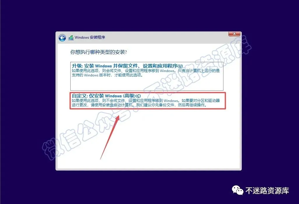 32.点击“自定义:仅安装Windows(高级)”