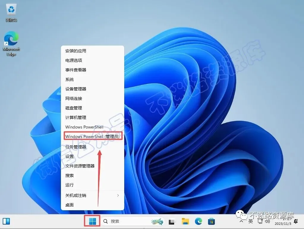 52.鼠标右键开始菜单,选择“Windows PowerShell(管理员)或者终端管理员”