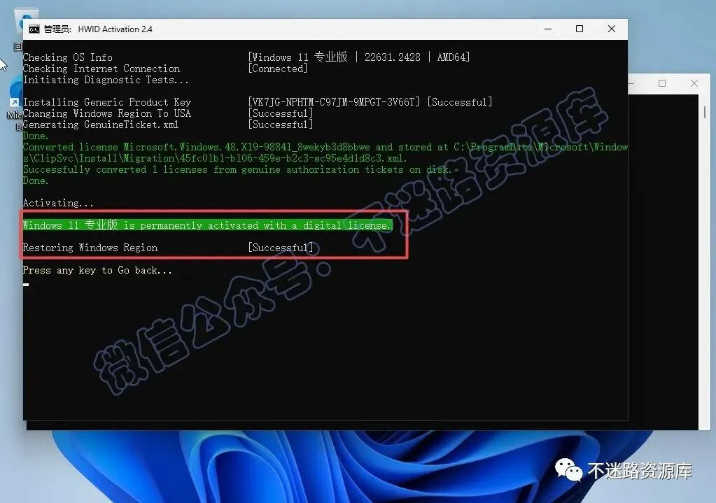 55.提示“Successful“,表示系统激活成功,关闭它