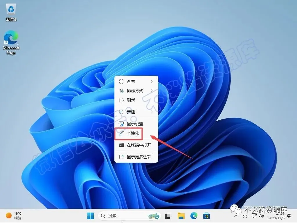 56.鼠标右键击桌面选择“个性化“