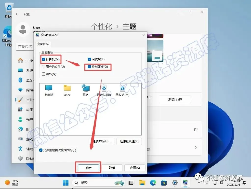 59.将计算机、控制面板勾选上,点击“确定“