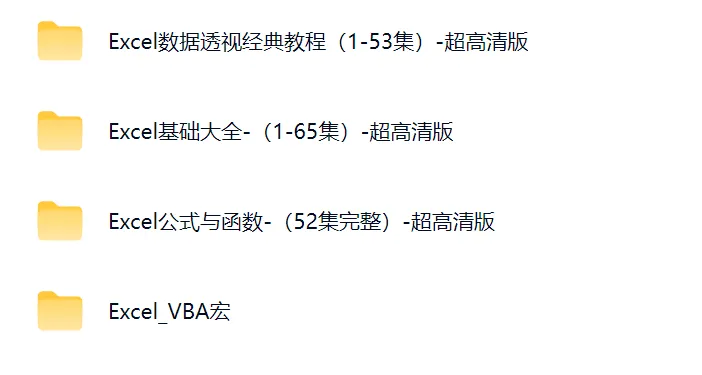 【Excel办公教程资料】Excel全套课程视频学习资料(VBA宏+基础大全+公式与函数等)