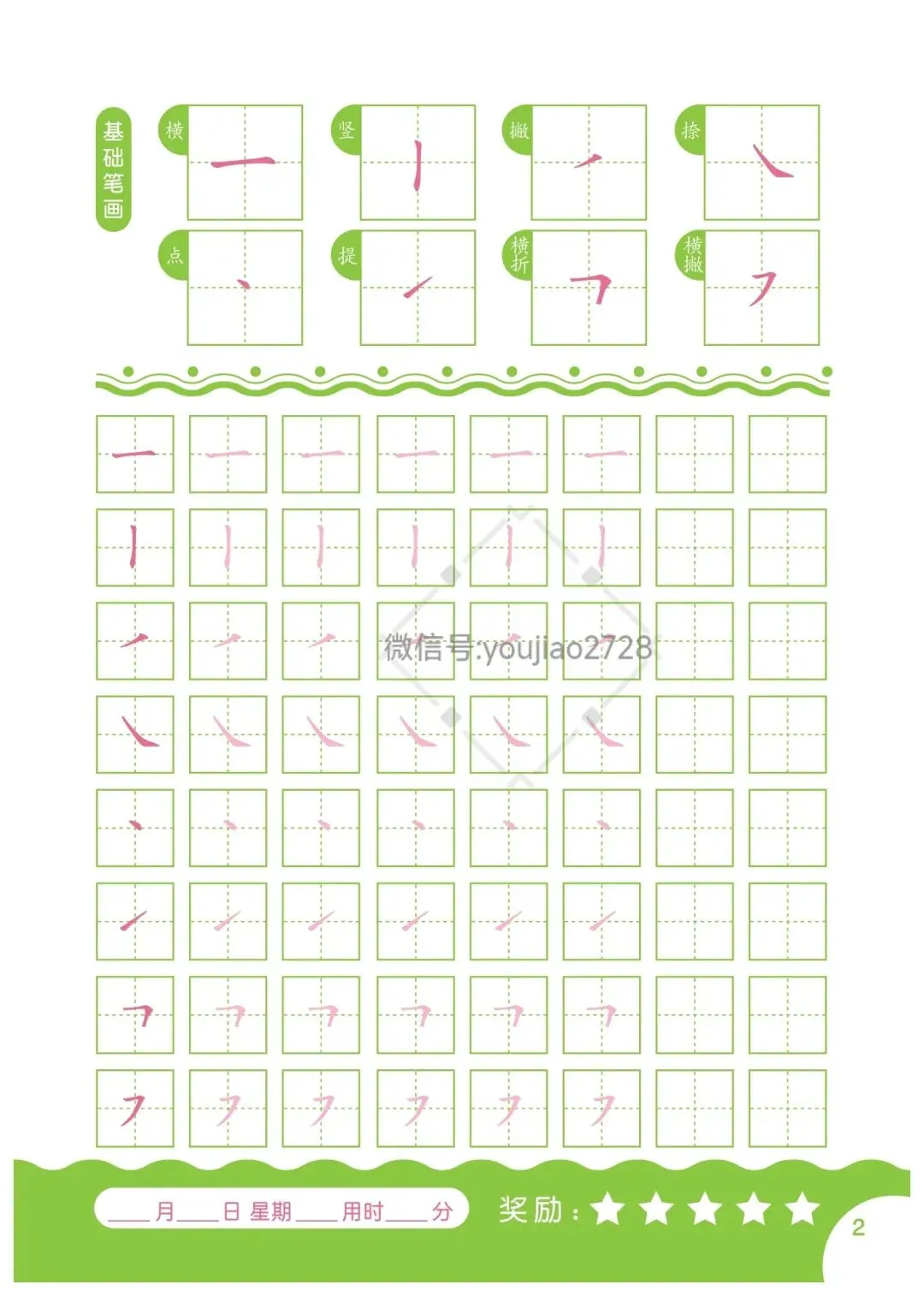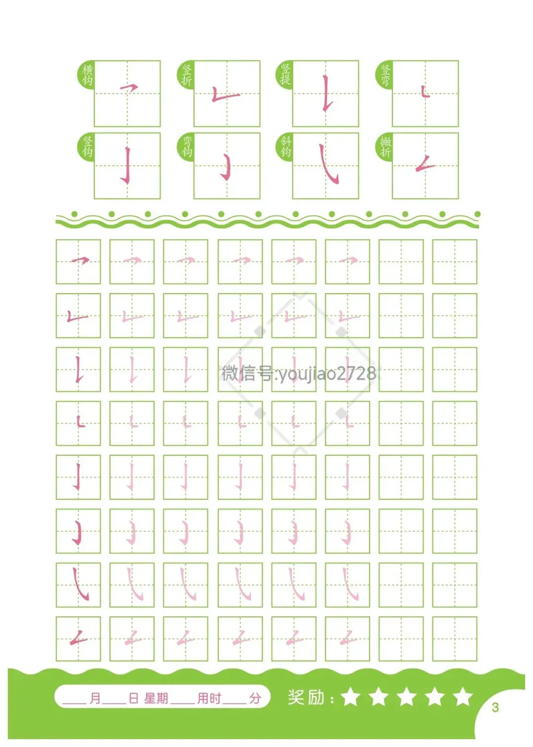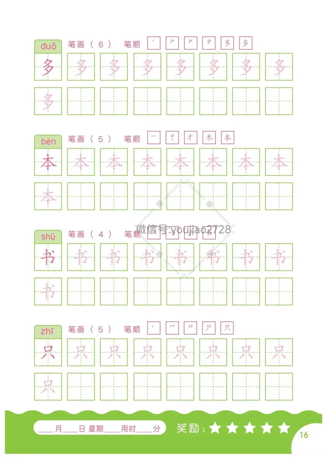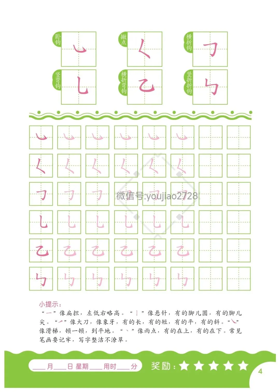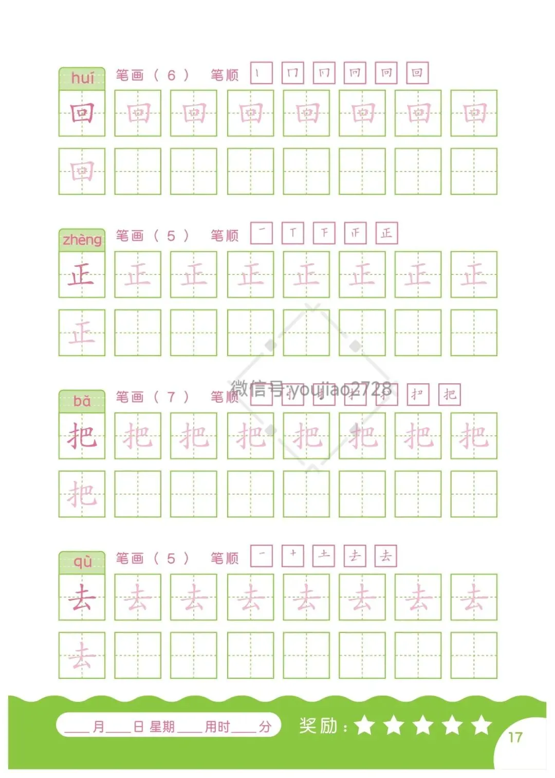 幼小衔接汉字笔画描红本79页,高清可打印