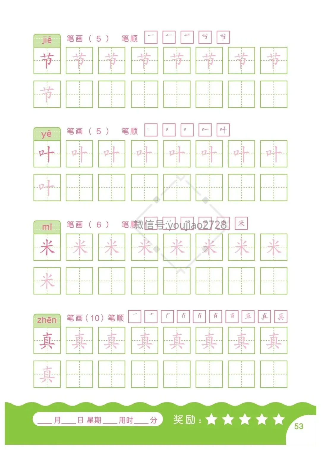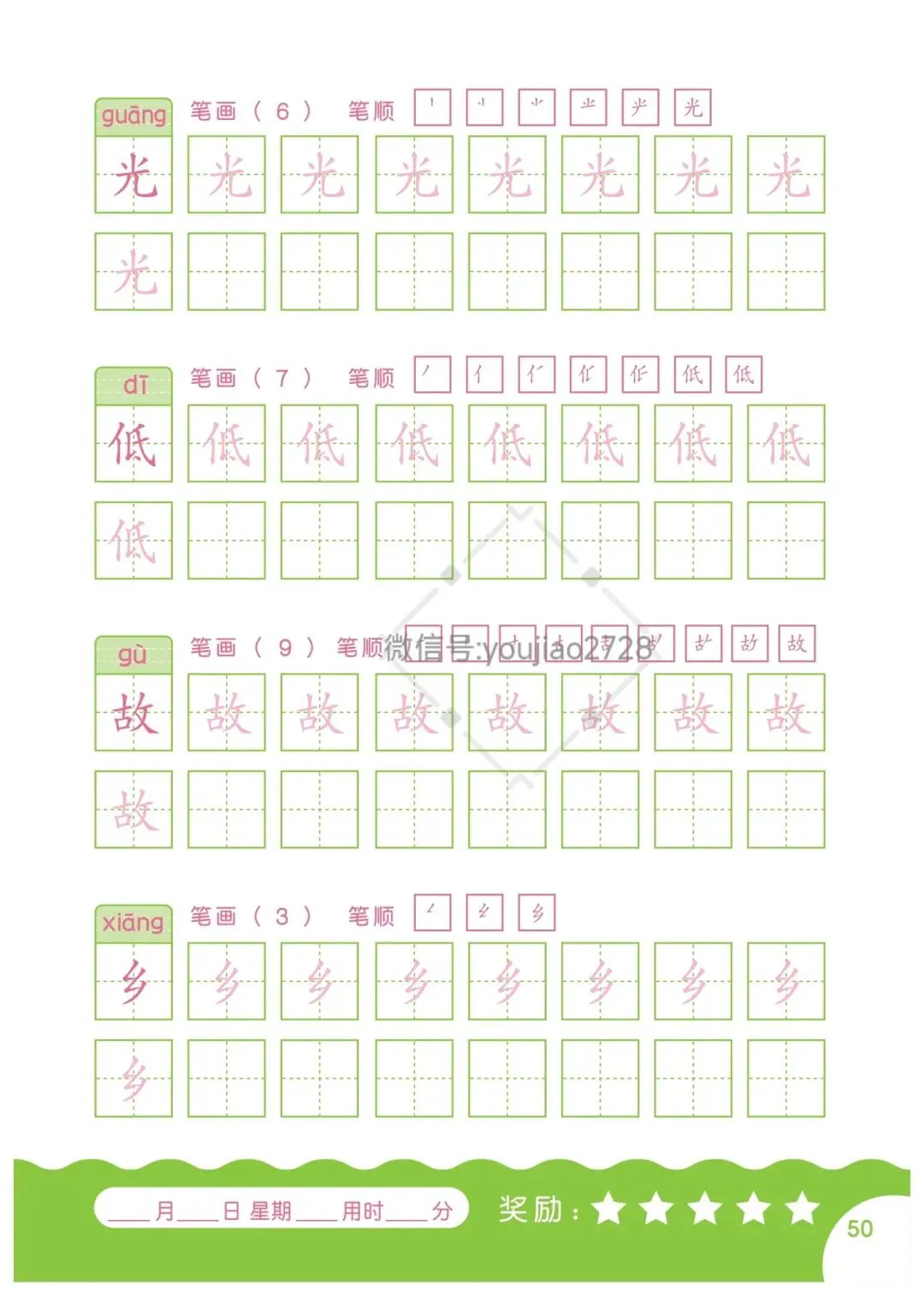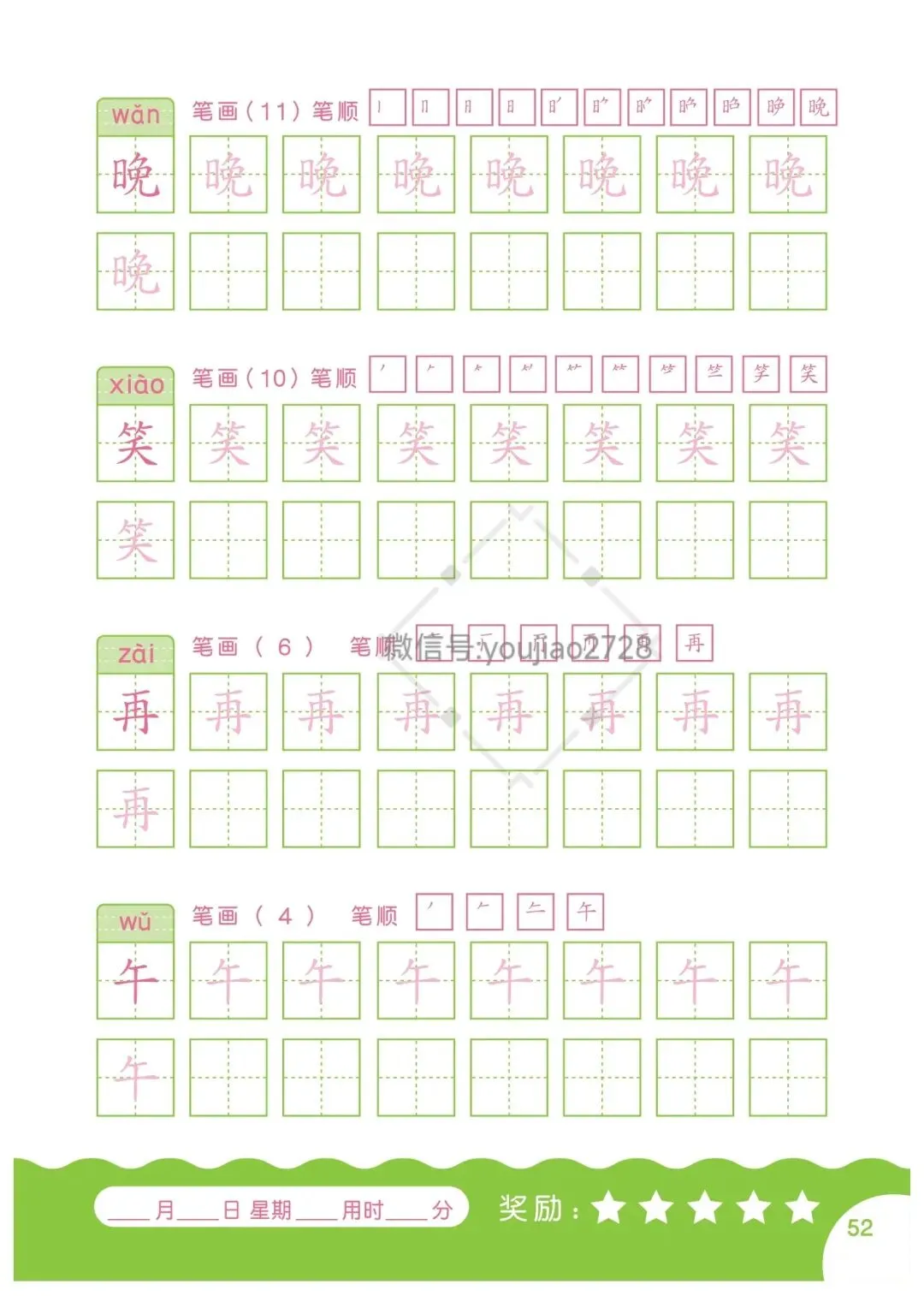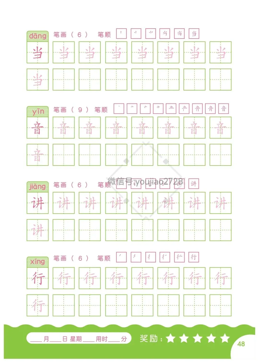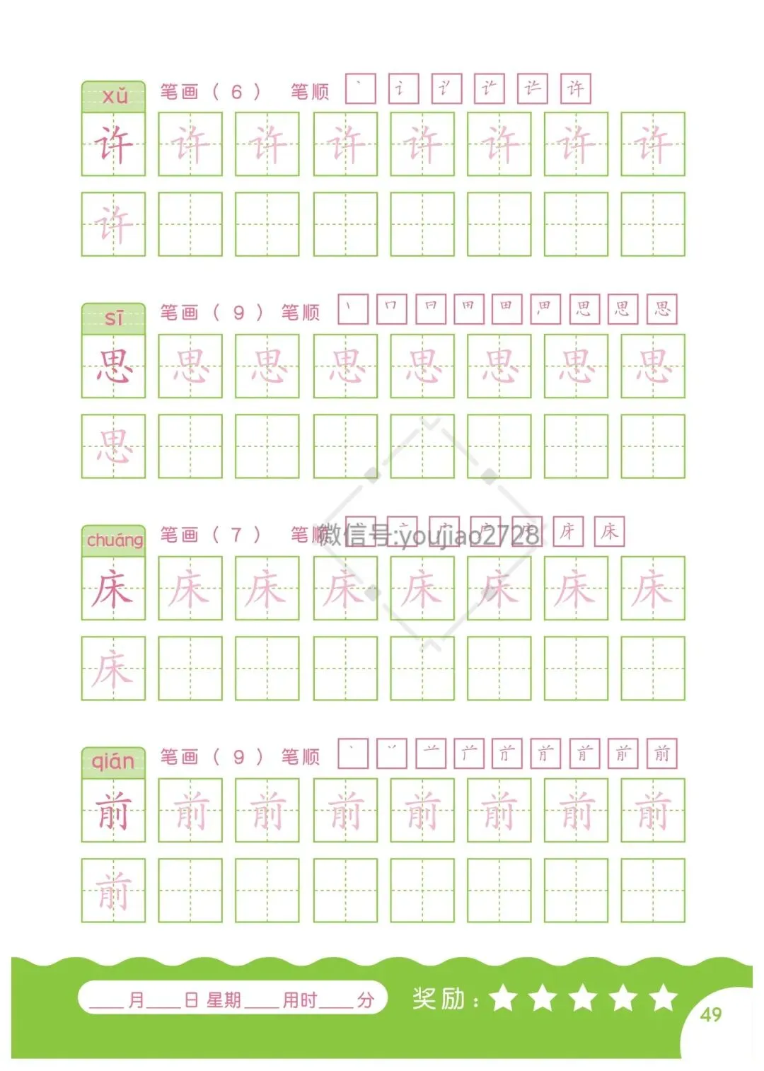 幼小衔接汉字笔画描红本79页,高清可打印