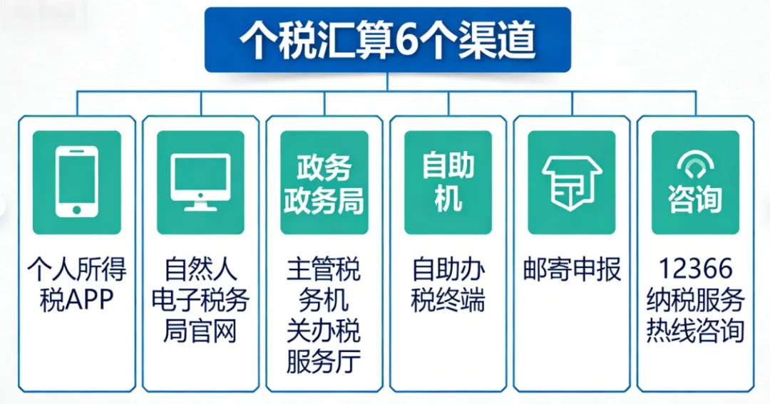 税观堂为你整理了个人所得税汇算办理6个渠道,请收好:
