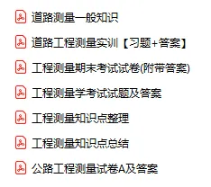 今天分享的资料是「1139-道路工程测量」电子版+学习笔记+知识点总结+期末考试重点+复习资料+习题集及答案+名词解释+历年真题试卷及答案+题库及答案+复习重点+思考题及参考答案+公式总结+考试重点基础题+知识总结+高清PDF可打印+免费分享!