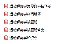 今天分享的资料是「1128-运动解剖学」电子版+学习笔记+知识点总结+期末考试重点+复习资料+习题集及答案+名词解释+历年真题试卷及答案+题库及答案+复习重点+思考题及参考答案+公式总结+考试重点基础题+知识总结+高清PDF可打印+免费分享!