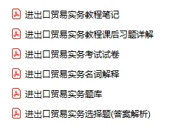 今天分享的资料是「1134-进出口贸易实务」电子版+学习笔记+知识点总结+期末考试重点+复习资料+习题集及答案+名词解释+历年真题试卷及答案+题库及答案+复习重点+思考题及参考答案+公式总结+考试重点基础题+知识总结+高清PDF可打印+免费分享!