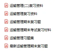 今天分享的资料是「1131-运输管理」电子版+学习笔记+知识点总结+期末考试重点+复习资料+习题集及答案+名词解释+历年真题试卷及答案+题库及答案+复习重点+思考题及参考答案+公式总结+考试重点基础题+知识总结+高清PDF可打印+免费分享!