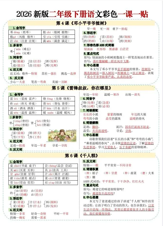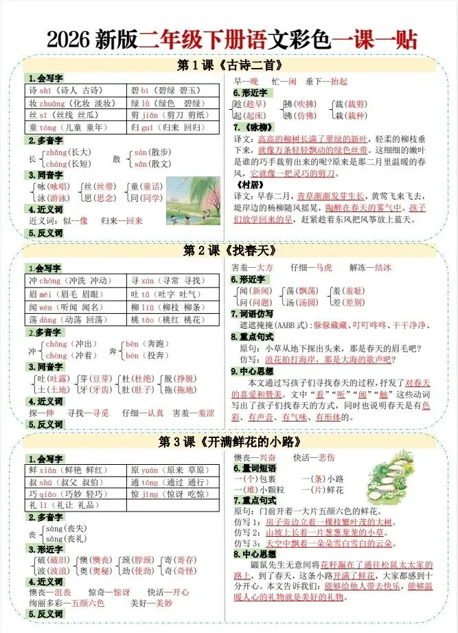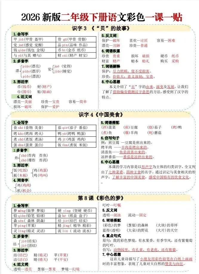今天给大家整理了26春二年级下册语文彩色一课一贴【多版本】,转发给朋友或班级群,受益更多人,帮助孩子学习!