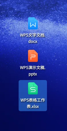 4.桌面上新建WPS文字文档.docx、WPS演示文稿.pptx、WPS表格工作表.xlsx。 -