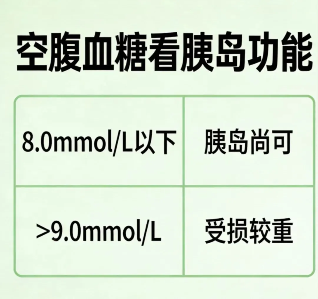 长期空腹血糖稳定在8.0 mmol/L以下:胰岛基础分泌尚可,还有修复与保护空间。