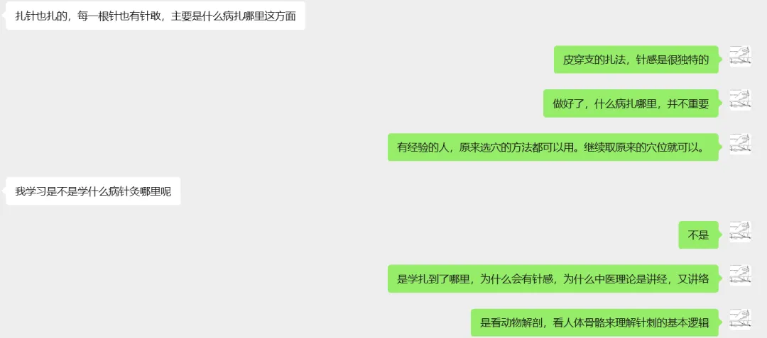 其次就是理解到毫米级的针感差异,即针尖错过一点点,就没有针感了。针尖偏差一点点,循经感传的方向就变化了。