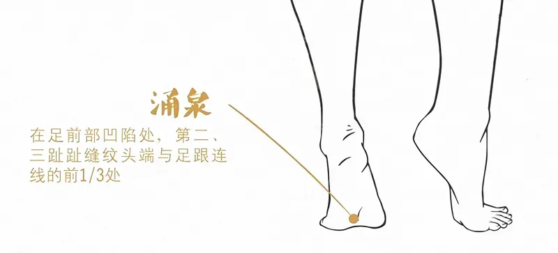 涌泉是肾经的第一个穴位,刺激涌泉穴辅助滋补肾之精气,增强腑脏的机能活动。此外,艾灸涌泉穴可以治神经衰弱、失眠、高血压、晕眩、怕冷症等。