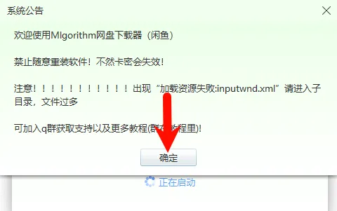 软件启动前,会弹出一个系统公告窗口,你只需轻轻点击“确定”按钮,便能顺利进入软件主界面。